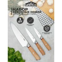 Эстетичный и функциональный набор профессиональных ножей из нержавеющей стали Trevi от бренда Unifico будет полезен на каждой кухне. Состоит из 3 предметов: шеф нож, универсальный нож и нож для овощей.