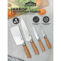 Эстетичный и функциональный набор профессиональных ножей из нержавеющей стали Trevi от бренда Unifico будет полезен на каждой кухне. Состоит из 4 предметов: шеф нож, топорик, универсальный нож и нож для овощей.