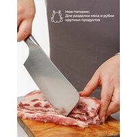 Эти ножи подходят для нарезки, резки, разделки мяса, рыбы, овощей, хлеба и других продуктов. Благодаря применению нержавеющей стали марки 3CR13, лезвия ножей отличаются прочностью и долговечностью, устойчивы к коррозии и обладают превосходной износостойкостью. Двухсторонняя заточка ножей обеспечивает высокую эффективность резки позволяя ножам уверенно справляться с любыми кулинарными задачами от нарезки овощей до разделки мяса.
