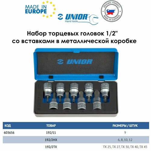 Купить UNIOR Набор головок торцевых 1/2″ ТХ25,27,30,40,45+НХ6,8,10,12 (9пр.) с доставкой по всей России. UNIOR Набор головок торцевых 1/2″ ТХ25,27,30,40,45+НХ6,8,10,12 (9пр.): сравнение цен, характеристики, фото, актуальное наличие и цены.