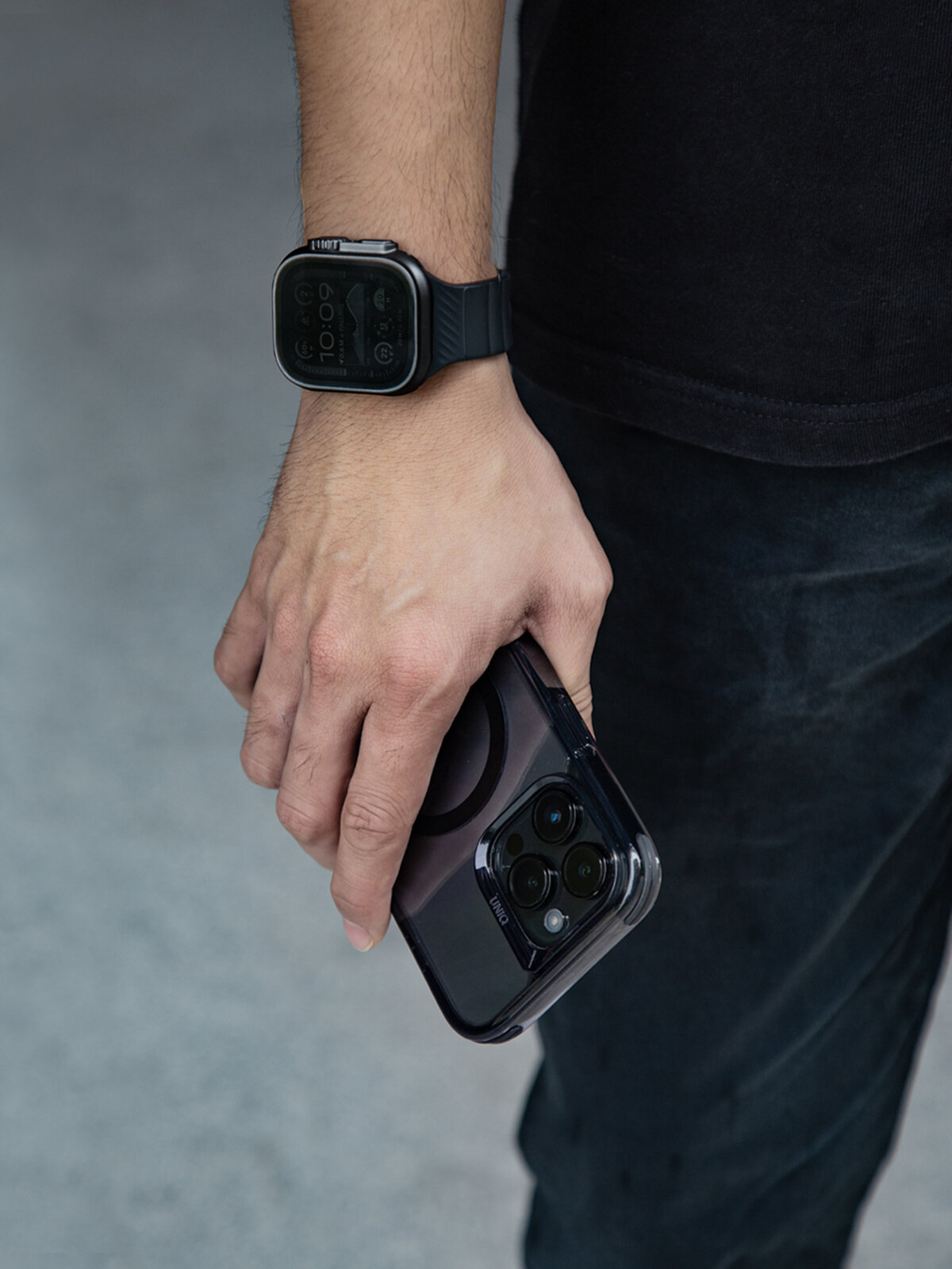 Защитный чехол Uniq Combat с экстремально усиленной защитой углов разработан для людей, ведущих активный образ жизни. Аксессуар устойчив к ударам и способен выдержать падение с высоты до 4 метров, что сравнимо с защитой от падений военного уровня (MIL-STD 810-560.6). Благодаря технологии ShockSorb, чехол защищает телефон от сколов, царапин и прочих повреждений. Бампер усилен специальными рёбрами, которые амортизируют удары, по углам предусмотрены специальные воздушные камеры. На внутренней стороне изделия расположена невидимая перфорированная сетка, которая предотвращает появление конденсата и помогает избежать прилипание задней стенки чехла к смартфону. Клавиши защищены заглушками, интегрированными в чехол - это препятствует попаданию частиц мусора, пыли и капель влаги внутрь чехла. Высокие бортики вокруг камеры оберегают объектив от механических дефектов. Благодаря встроенному магниту MagSafe, вы можете использовать другие аксессуары с таким креплением: картхолдеры, зарядки, держатели. Поставляется в фирменной картонной упаковке Uniq.