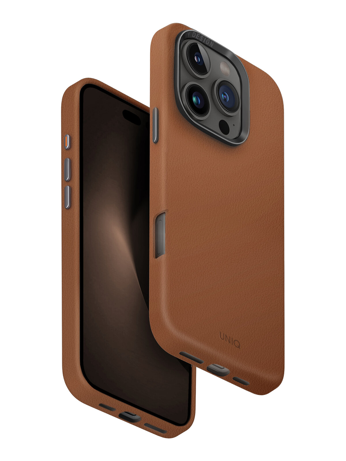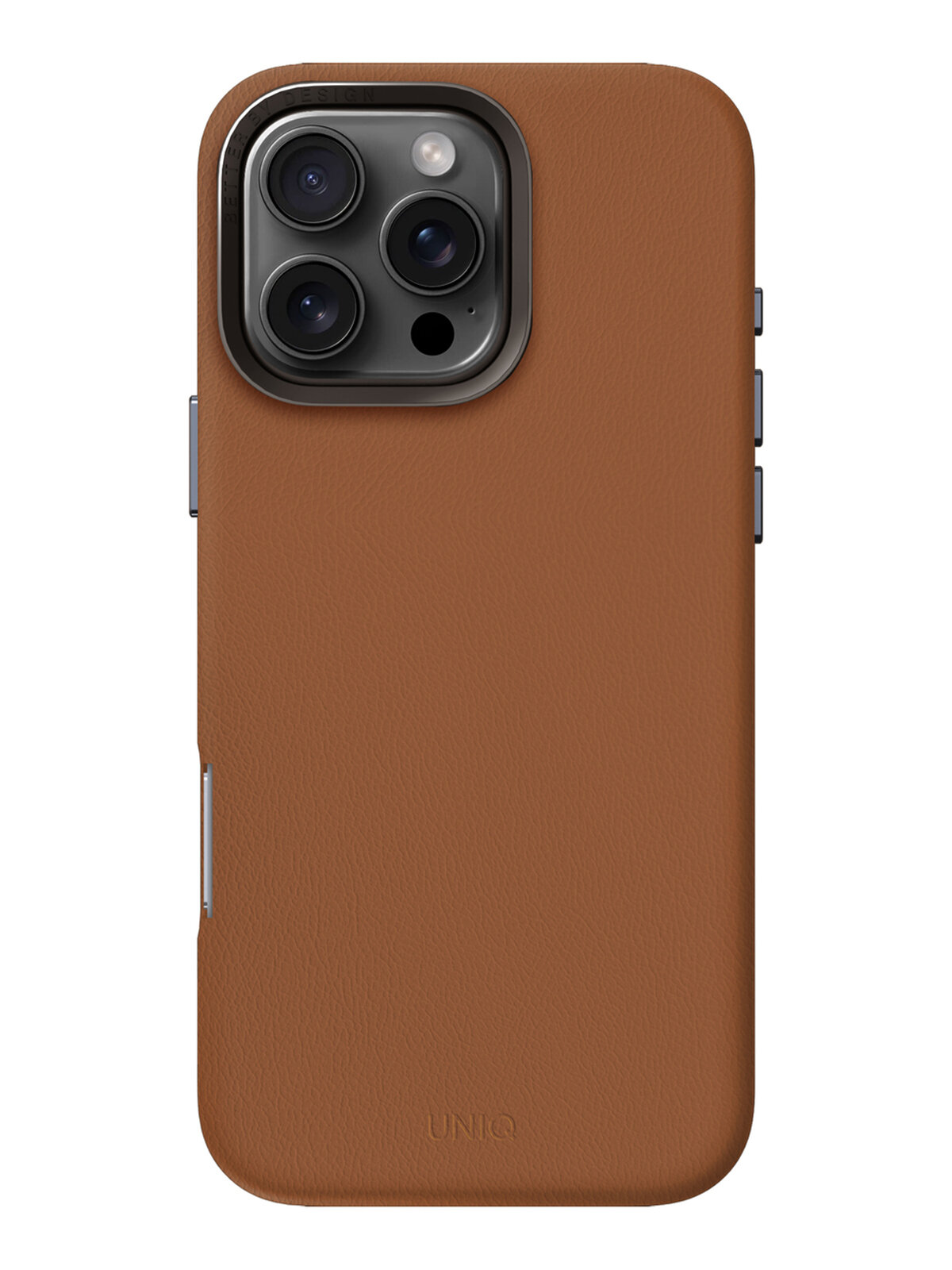 Uniq Lyden - серия чехлов для iPhone из премиальной экокожи. Материал приятный на ощупь и имеет фактуру настоящей кожи. Не скользит в руках или по поверхностям, смягчает при падении и других физических воздействиях, сохраняя телефон в первозданном виде. Накладка сделана из прочного пластика с укрепленными углами. Внутренняя часть проложена мягкой микрофиброй, материал не оставляющий царапин, а так же придающий дополнительную амортизацию. Алюминиевый безель возвышается вокруг блока камеры, не давая линзам касаться поверхностей, на которых лежит телефон. На задней крышке спрятан магнитный держатель MagSafe, позволяющий заряжать гаджет по технологии Qi, либо использовать другие аксессуары, имеющие магнитное кольцо.На боковых гранях расположены дублирующие металлические кнопки.