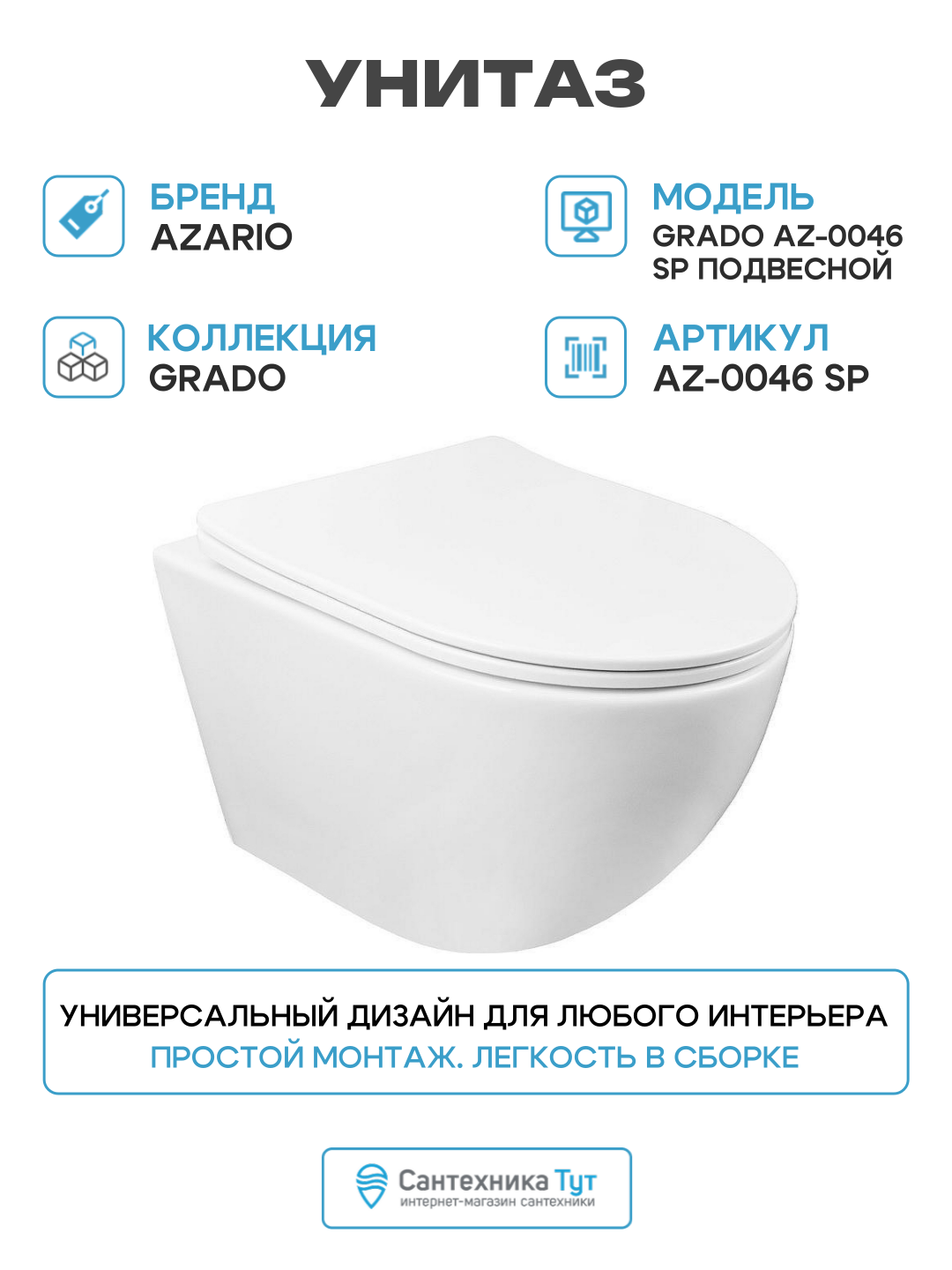Унитаз Azario Grado AZ-0046 SP подвесной белый фаянс подвесной: сравнение цен, характеристики, фото, актуальное наличие и цены.