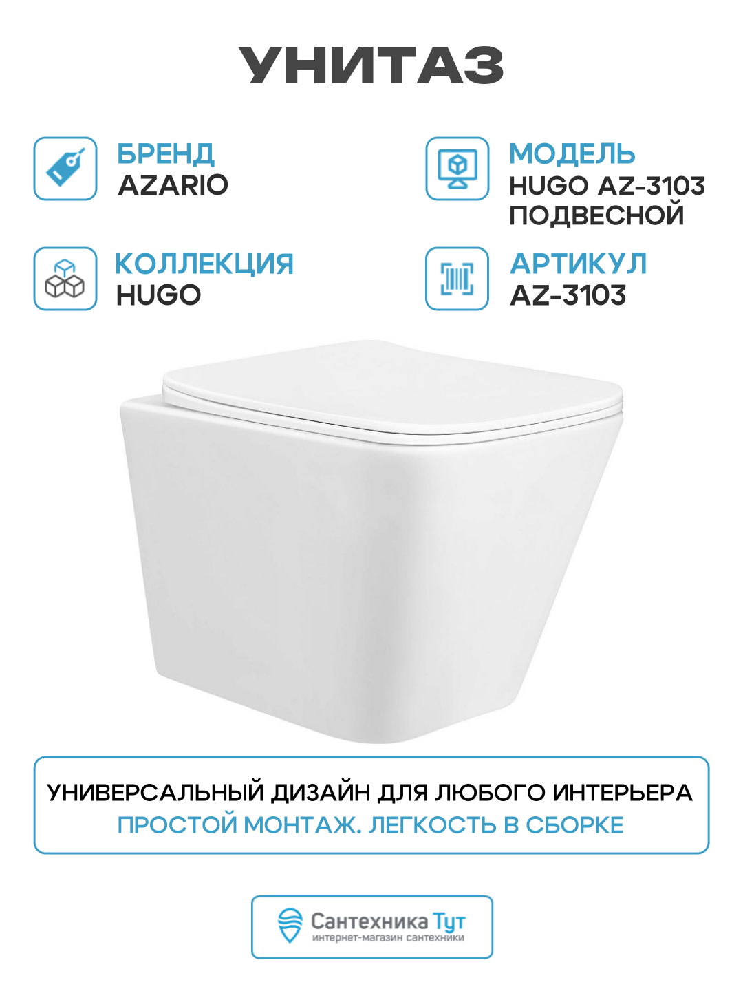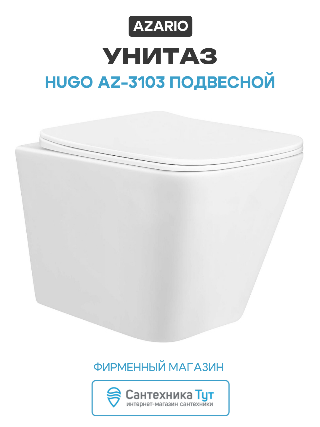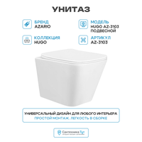 Купить Унитаз Azario Hugo AZ-3103 подвесной цвет Белый с сиденьем Микролифт с доставкой по всей России.