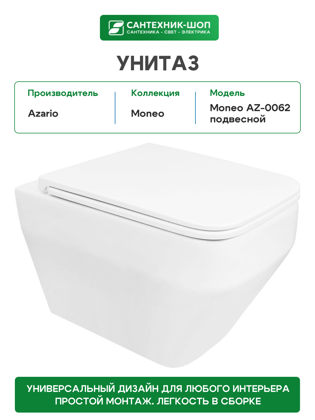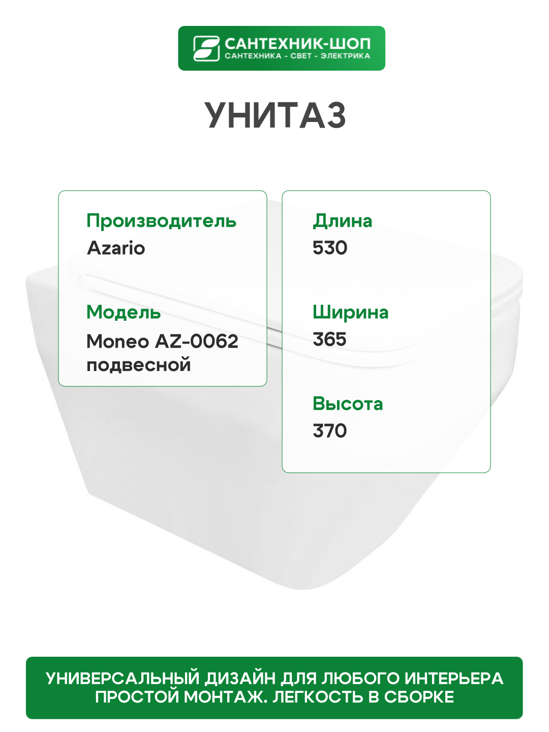Купить Унитаз Azario Moneo AZ-0062 подвесной цвет Белый с сиденьем Микролифт с доставкой по всей России.