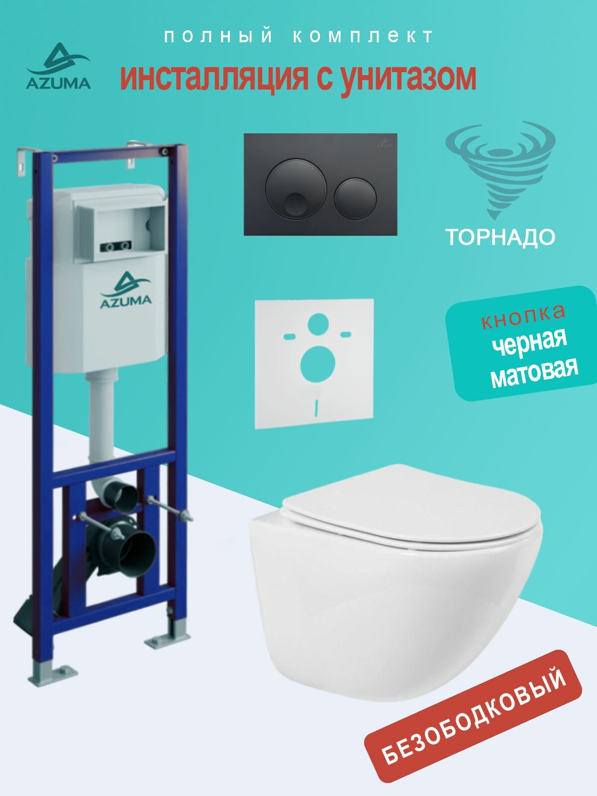 Купить Унитаз AZUMA Primavera Tornado 3.0, подвесной, антигрязевой, с узкой инсталляцией, + клавиша смыва. с доставкой по всей России.