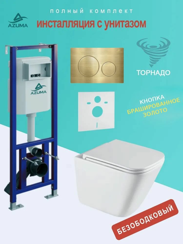 Унитаз Azuma Verano смыв Торнадо 3.0, сиденье быстросъемное с микролифтом + инсталляция Azuma узкая +кнопка