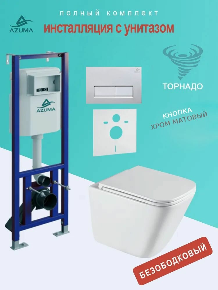 Купить Унитаз Azuma Verano смыв Торнадо 3.0, сиденье быстросъемное с микролифтом + инсталляция Azuma узкая +кнопка с доставкой по всей России.