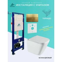 Унитаз Azuma Verano Торнадо 3.0, безободковый, с сиденьем микролифт + инсталляция + кнопка