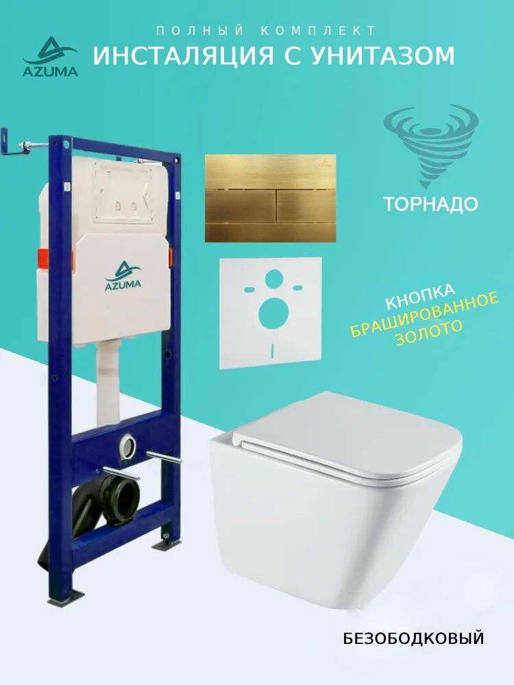 Купить Унитаз Azuma Verano Торнадо 3.0, безободковый, с сиденьем микролифт + инсталляция + кнопка с доставкой по всей России.
