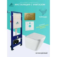 Унитаз Azuma Verano Торнадо 3.0, безободковый, с сиденьем микролифт + инсталляция + кнопка