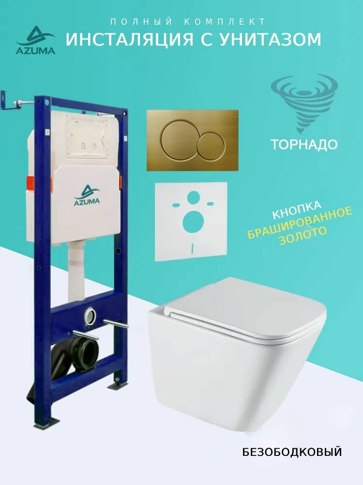 Купить Унитаз Azuma Verano Торнадо 3.0, безободковый, с сиденьем микролифт + инсталляция + кнопка с доставкой по всей России.