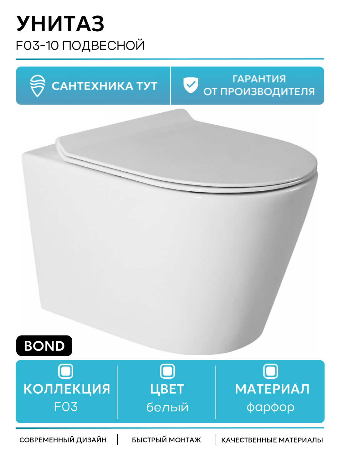Унитаз Bond F03-10 подвесной Белый с сиденьем Микролифт белый фарфор подвесной: сравнение цен, характеристики, фото, актуальное наличие и цены.