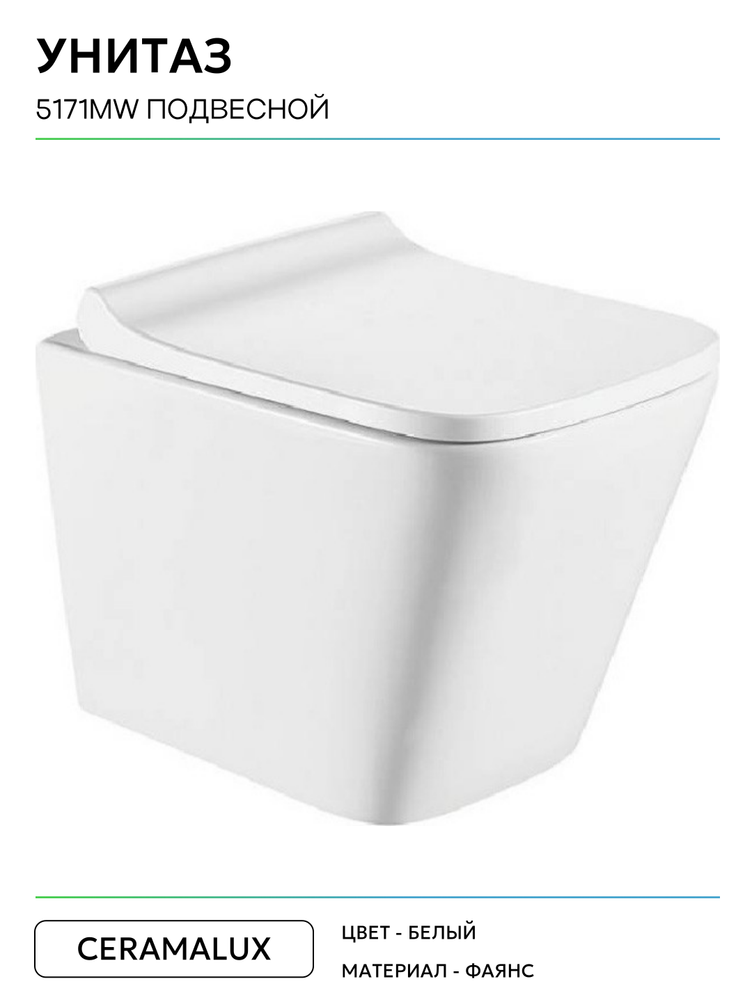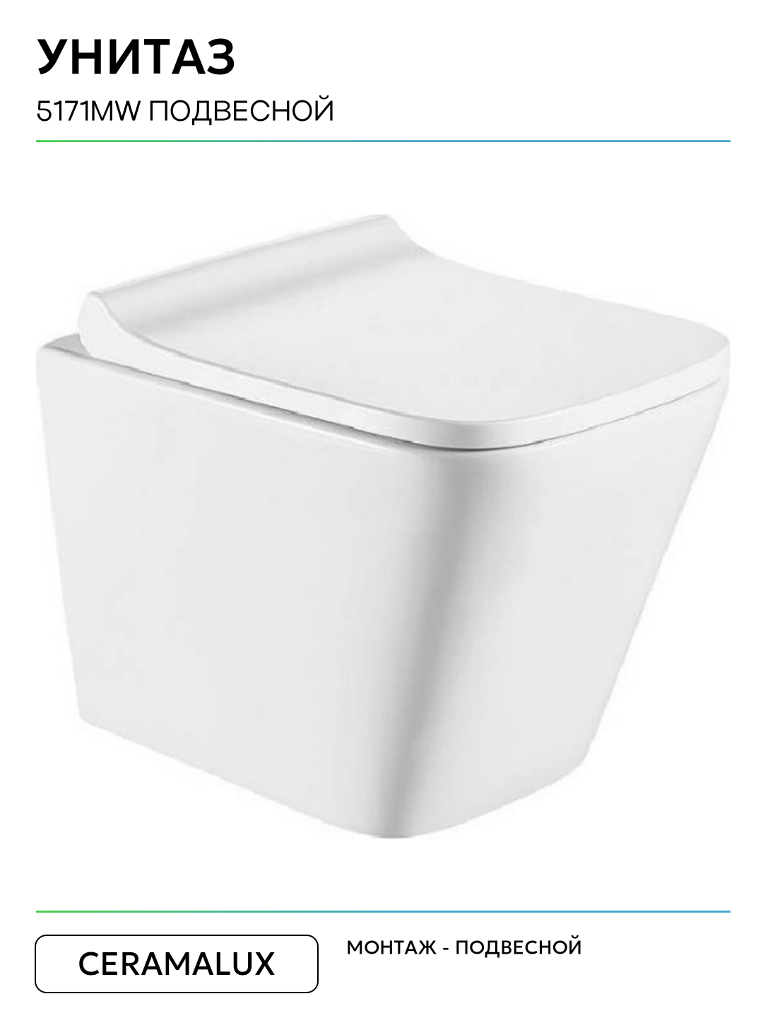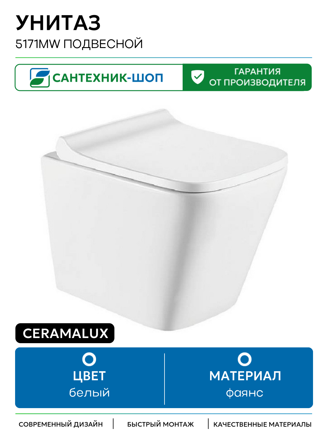 Купить Унитаз CeramaLux 5171MW подвесной белый фаянс подвесной с доставкой по всей России. Унитаз CeramaLux 5171MW подвесной белый фаянс подвесной: сравнение цен, характеристики, фото, актуальное наличие и цены.