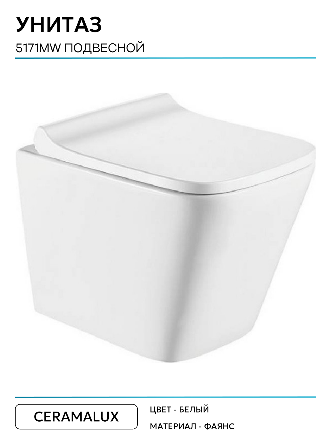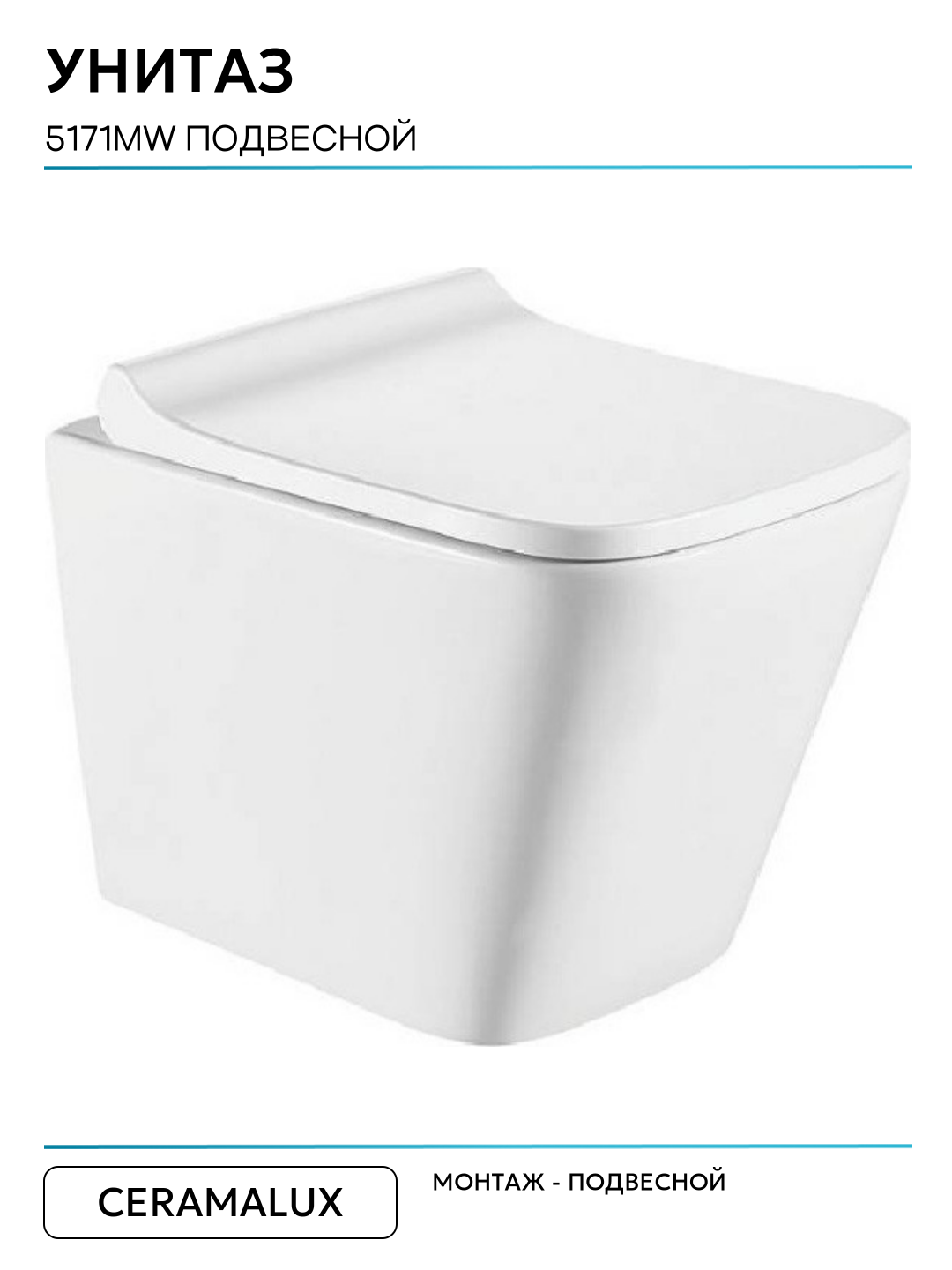Купить Унитаз CeramaLux 5171MW подвесной Белый матовый с сиденьем Микролифт с доставкой по всей России. Унитаз CeramaLux 5171MW подвесной Белый матовый с сиденьем Микролифт: сравнение цен, характеристики, фото, актуальное наличие и цены.