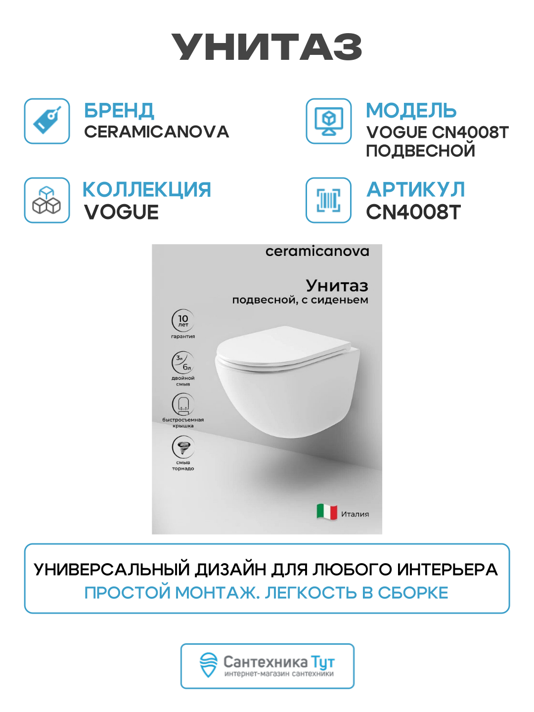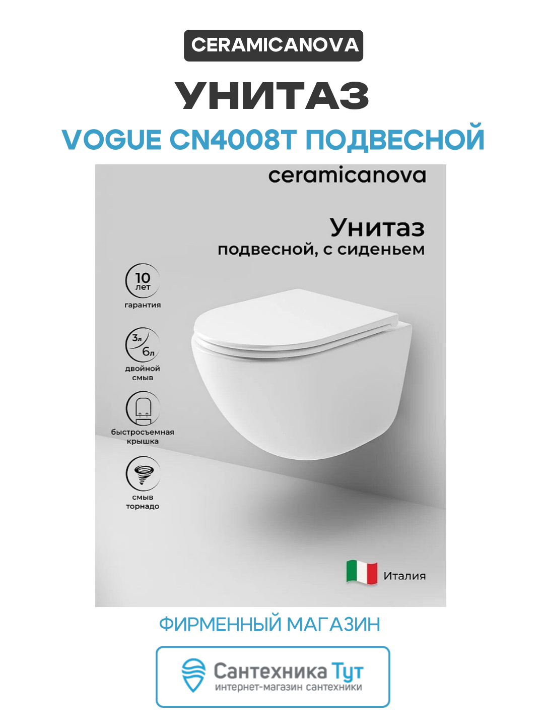 Купить Унитаз Ceramicanova Vogue CN4008T подвесной Белый с сиденьем Микролифт белый фарфор подвесной с доставкой по всей России. Унитаз Ceramicanova Vogue CN4008T подвесной Белый с сиденьем Микролифт белый фарфор подвесной: сравнение цен, характеристики, фото, актуальное наличие и цены.
