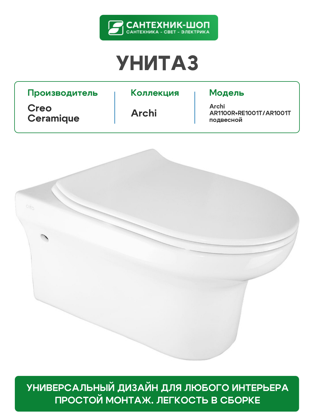 Купить Унитаз Creo Ceramique Archi AR1100R+RE1001T/AR1001T подвесной цвет Белый с сиденьем Микролифт с доставкой по всей России. Унитаз Creo Ceramique Archi AR1100R+RE1001T/AR1001T подвесной цвет Белый с сиденьем Микролифт: сравнение цен, характеристики, фото, актуальное наличие и цены.