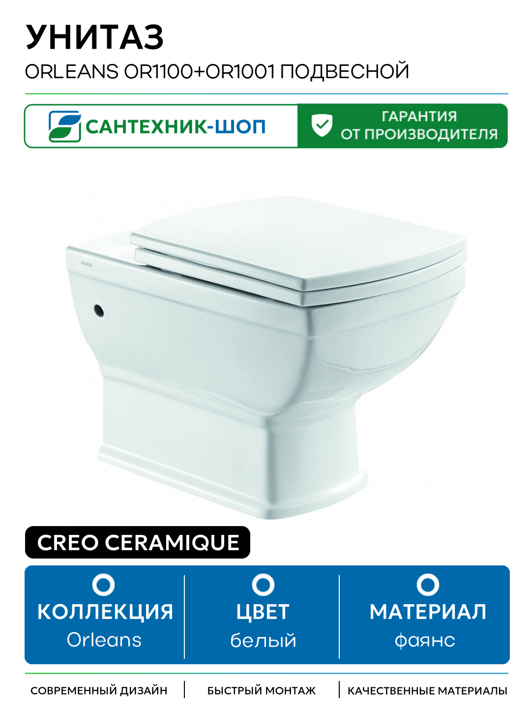 Унитаз Creo Ceramique Orleans OR1100+OR1001 подвесной с сиденьем Микролифт белый фаянс подвесной: сравнение цен, характеристики, фото, актуальное наличие и цены.