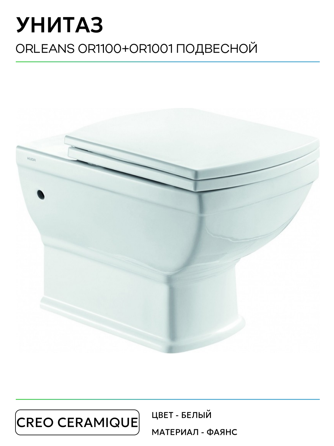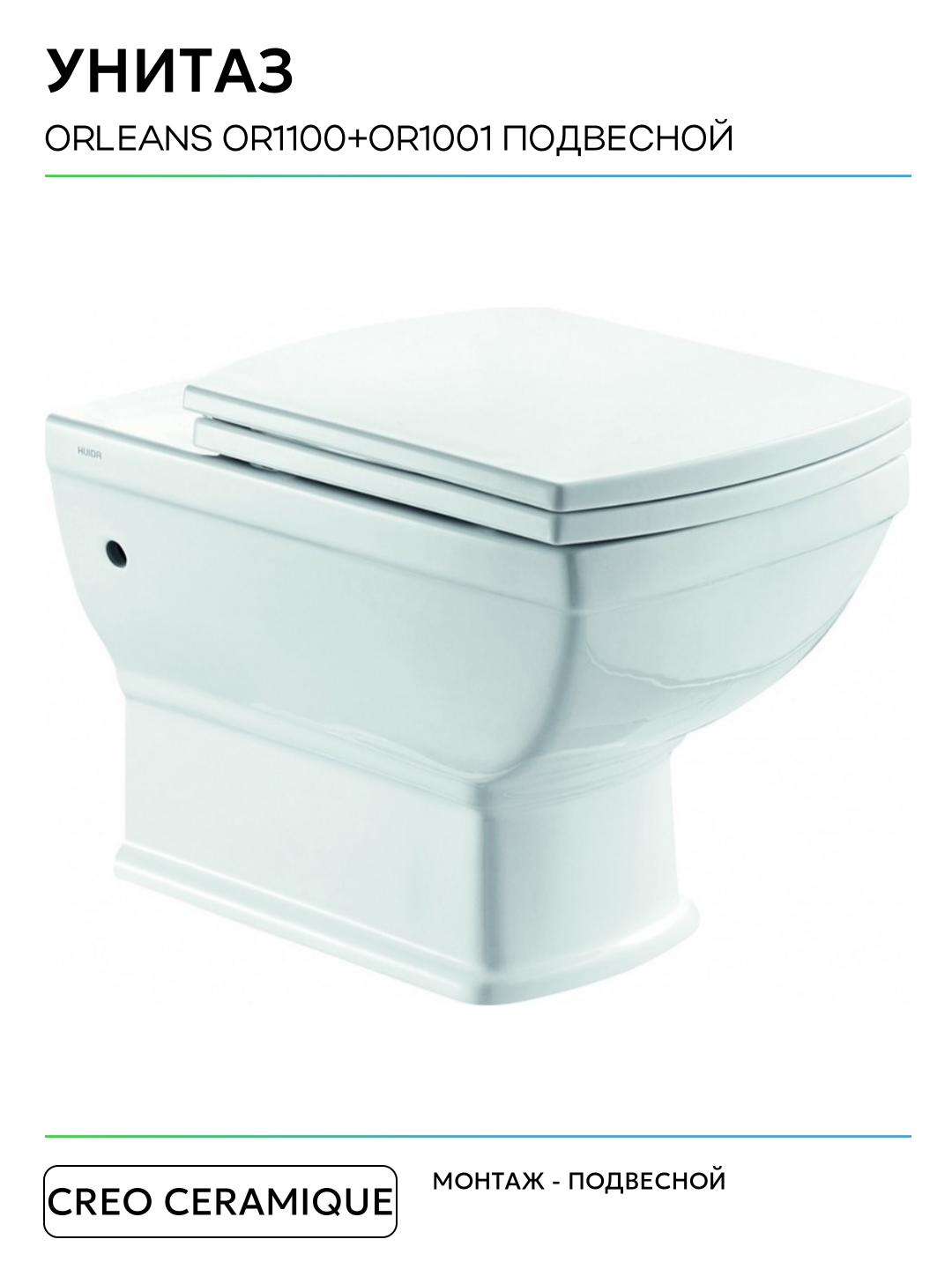Купить Унитаз Creo Ceramique Orleans OR1100+OR1001 подвесной с сиденьем Микролифт белый фаянс подвесной с доставкой по всей России.