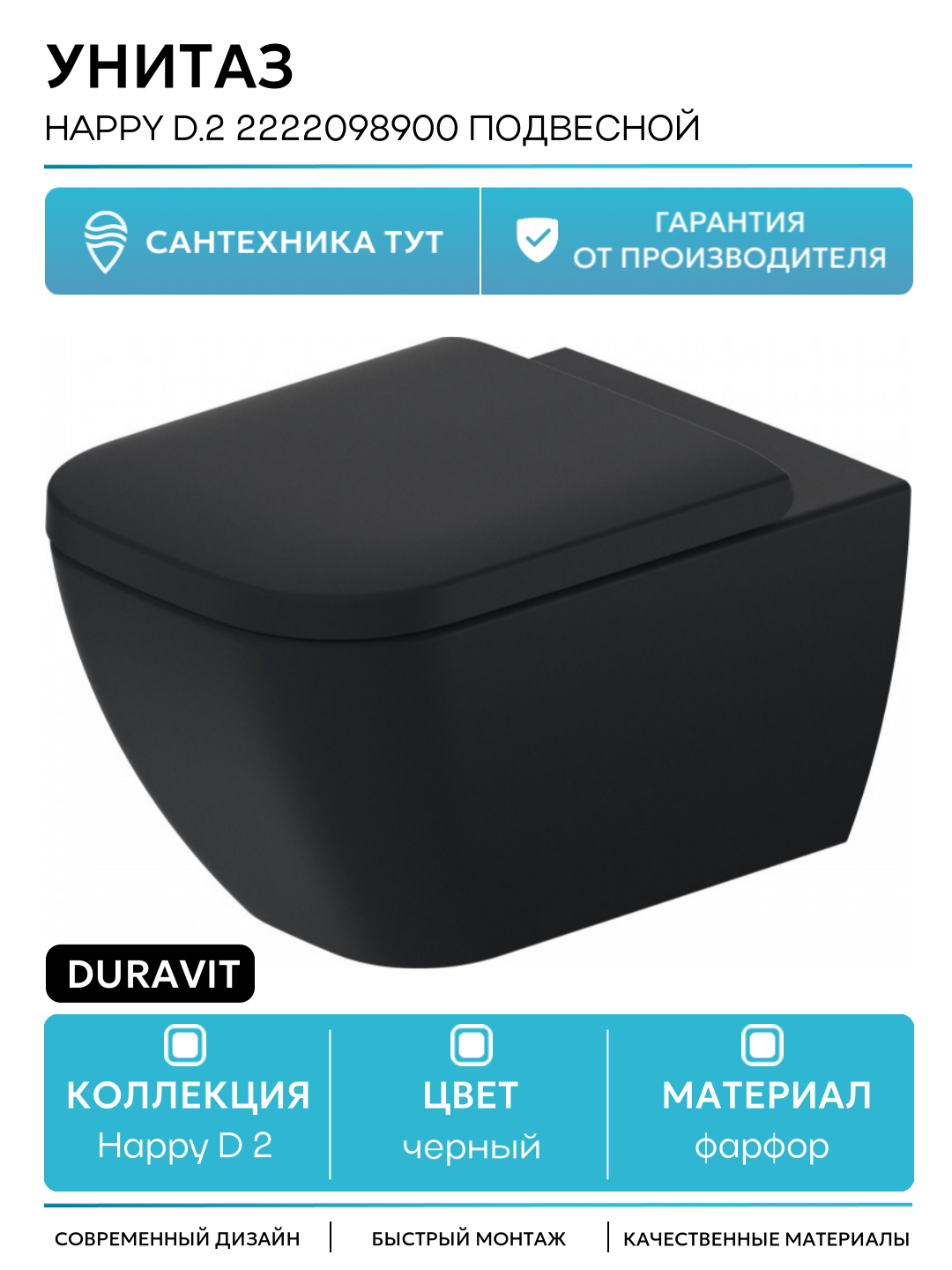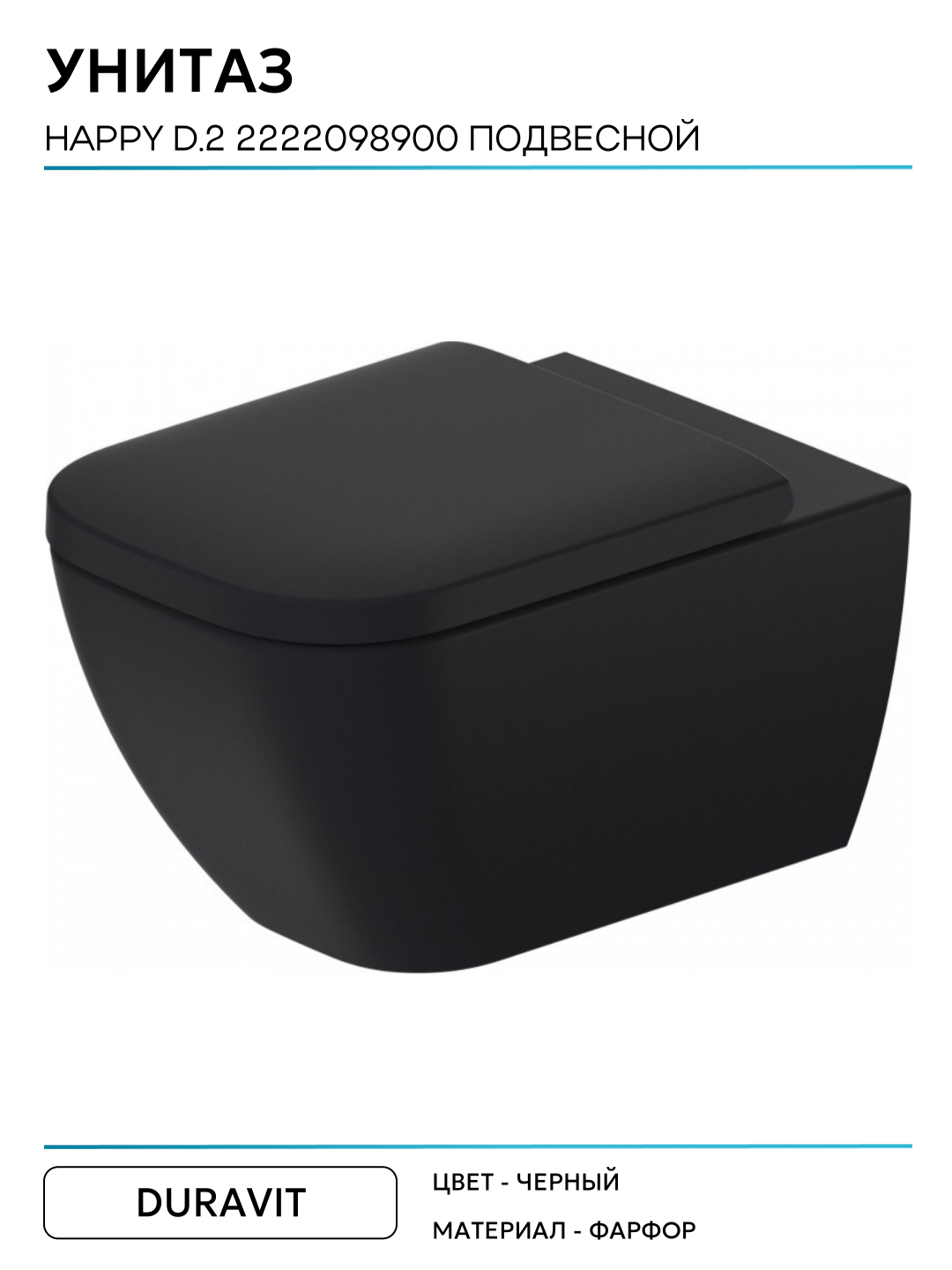 Унитаз Duravit Happy D.2 2222098900 подвесной Антрацит матовый без сиденья черный фарфор подвесной: сравнение цен, характеристики, фото, актуальное наличие и цены.