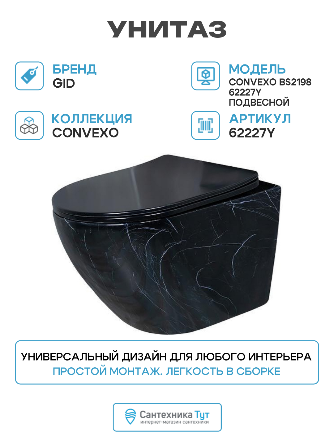 Унитаз Gid Convexo Bs2198 62227Y подвесной цвет Черный глянцевый с сиденьем Микролифт: сравнение цен, характеристики, фото, актуальное наличие и цены.