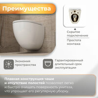 Круговой смыв - современный воронкообразный вид смыва, который позволяет обработать до 95% поверхности чаши унитаза. Такой смыв имеет массу преимуществ: - Экономичный расход воды, использует до 40% меньше воды; - Быстрая уборка, за счет отсутствия ободка, в котором скапливается грязь; - Качественный смыв. Позволяет с эффективностью до 95% удалять загрязнения поверхности чаши; - Система антивсплеск предотвращает попадание брызг за пределы ободка унитаза; - Бесшумный смыв, тише на 22%