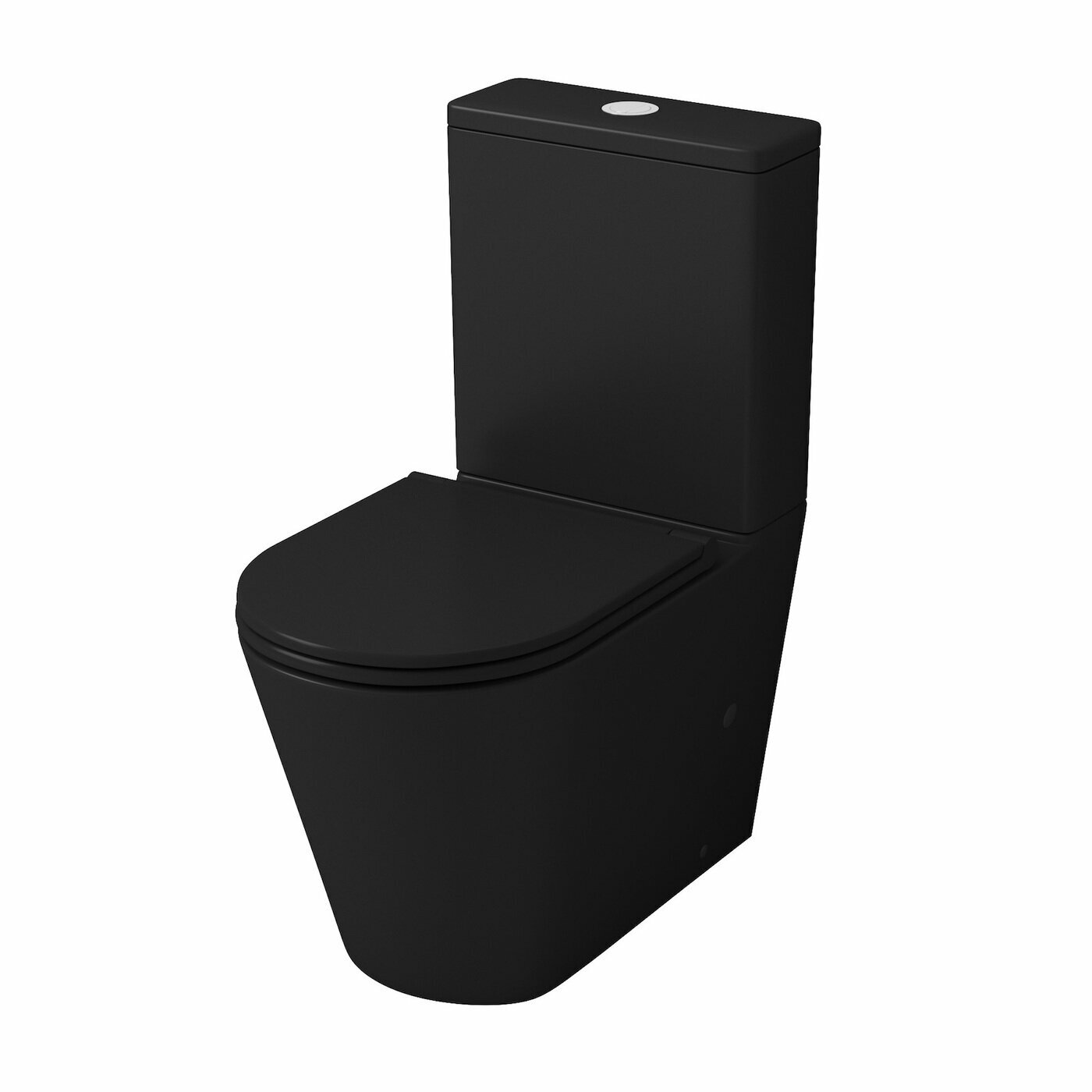 Унитаз напольный черного цвета с бачком и сиденьем, оборудован сливом "торнадо"