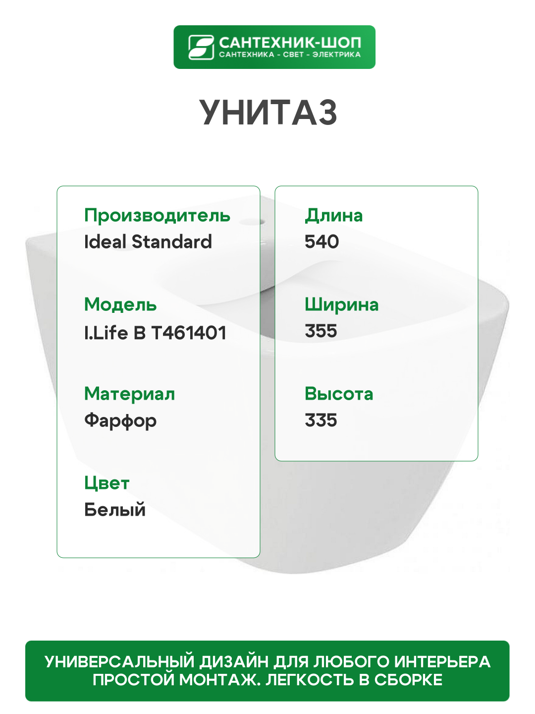 Унитаз Ideal Standard I.Life B T461401 без сиденья фарфор подвесной: сравнение цен, характеристики, фото, актуальное наличие и цены.