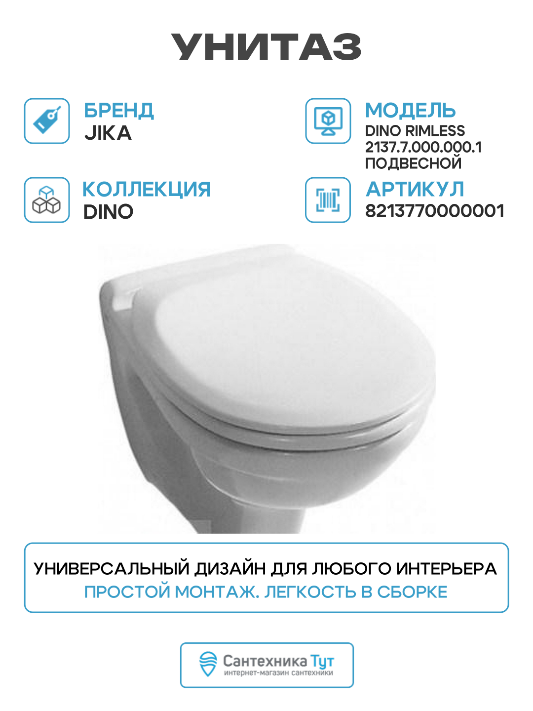 Купить Унитаз Jika Dino rimless 2137.7.000.000.1 подвесной без сиденья белый фаянс подвесной с доставкой по всей России. Унитаз Jika Dino rimless 2137.7.000.000.1 подвесной без сиденья белый фаянс подвесной: сравнение цен, характеристики, фото, актуальное наличие и цены.