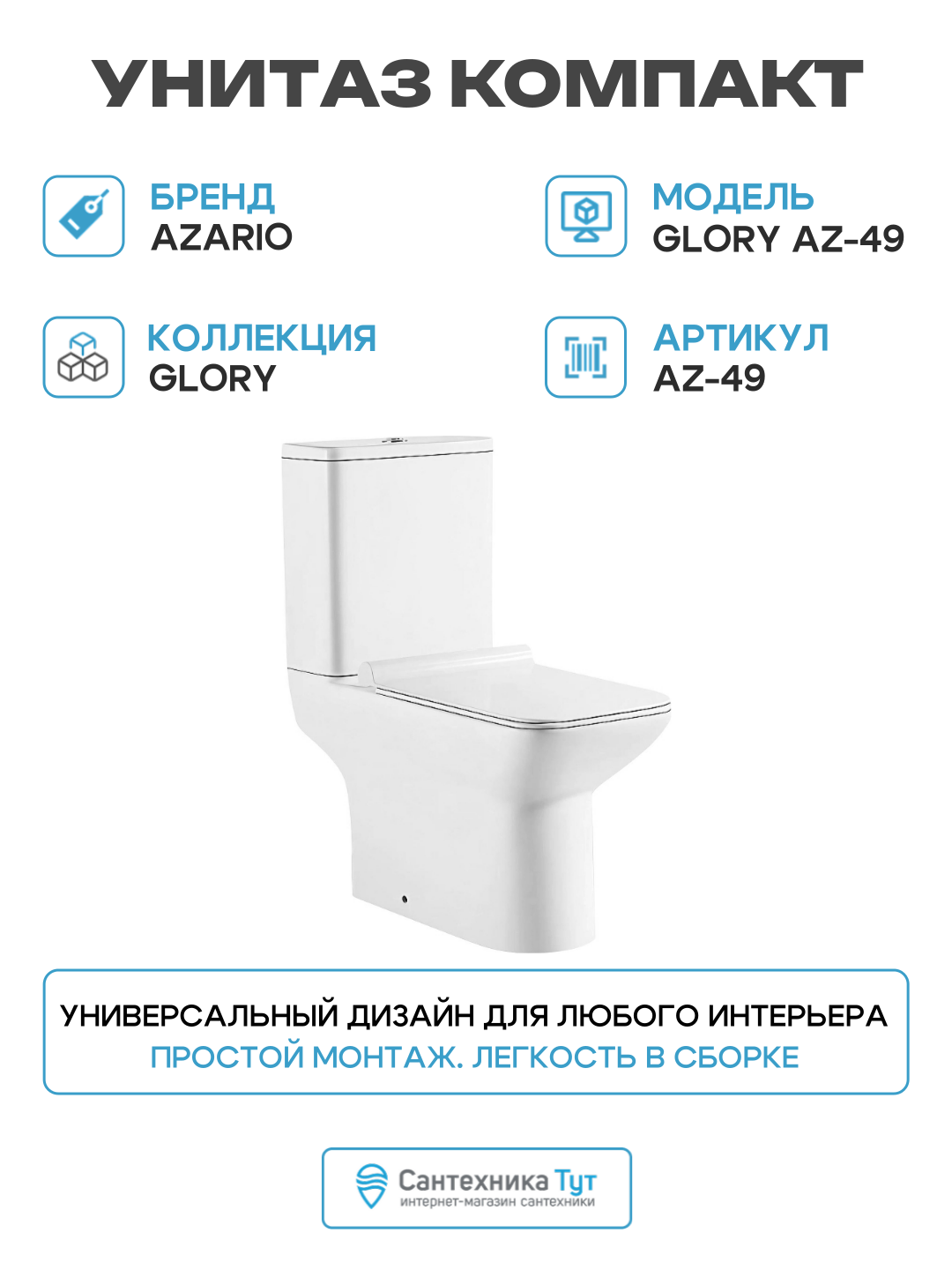 Унитаз компакт Azario Glory AZ-49 цвет Белый с бачком и сиденьем Микролифт: сравнение цен, характеристики, фото, актуальное наличие и цены.