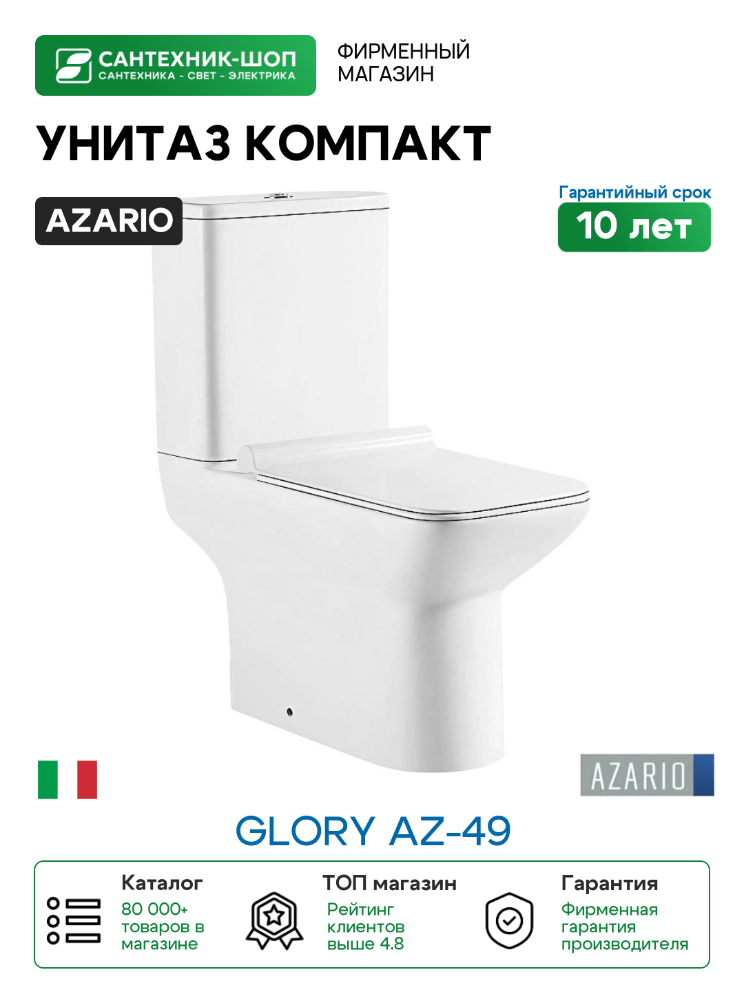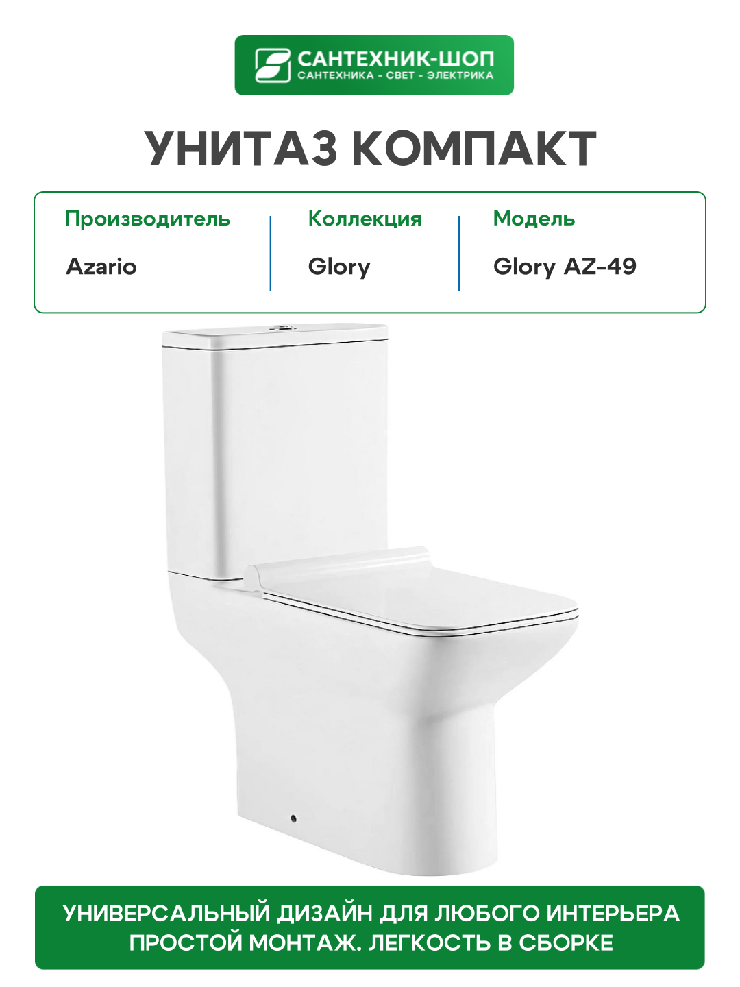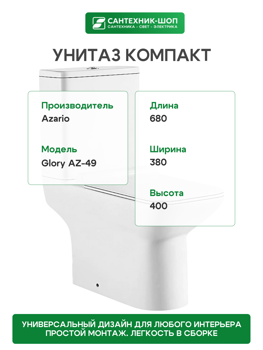 Унитаз компакт Azario Glory AZ-49 цвет Белый с бачком и сиденьем Микролифт: сравнение цен, характеристики, фото, актуальное наличие и цены.