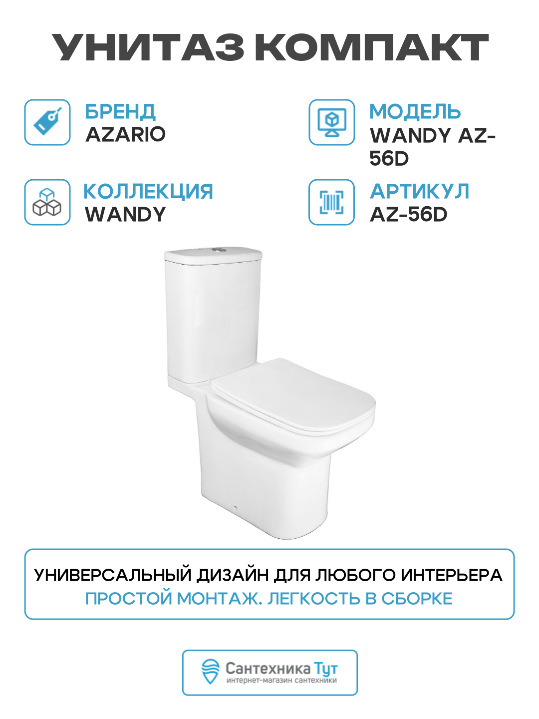 Купить Унитаз компакт Azario Wandy AZ-56D цвет Белый с бачком и сиденьем Микролифт с доставкой по всей России. Унитаз компакт Azario Wandy AZ-56D цвет Белый с бачком и сиденьем Микролифт: сравнение цен, характеристики, фото, актуальное наличие и цены.