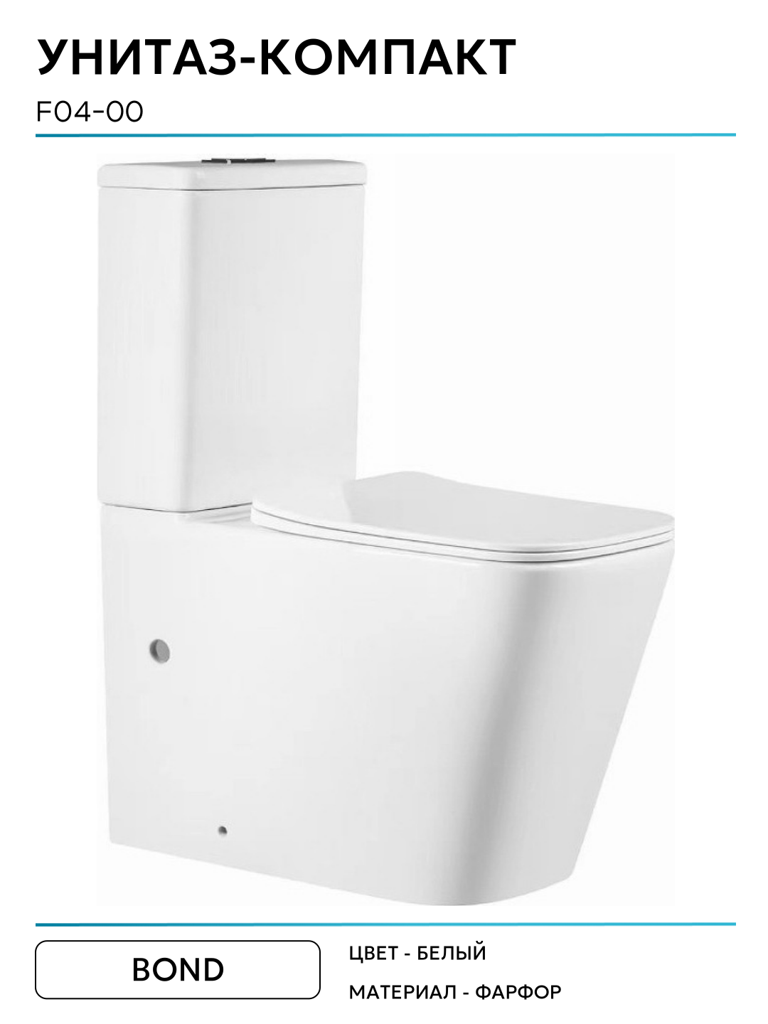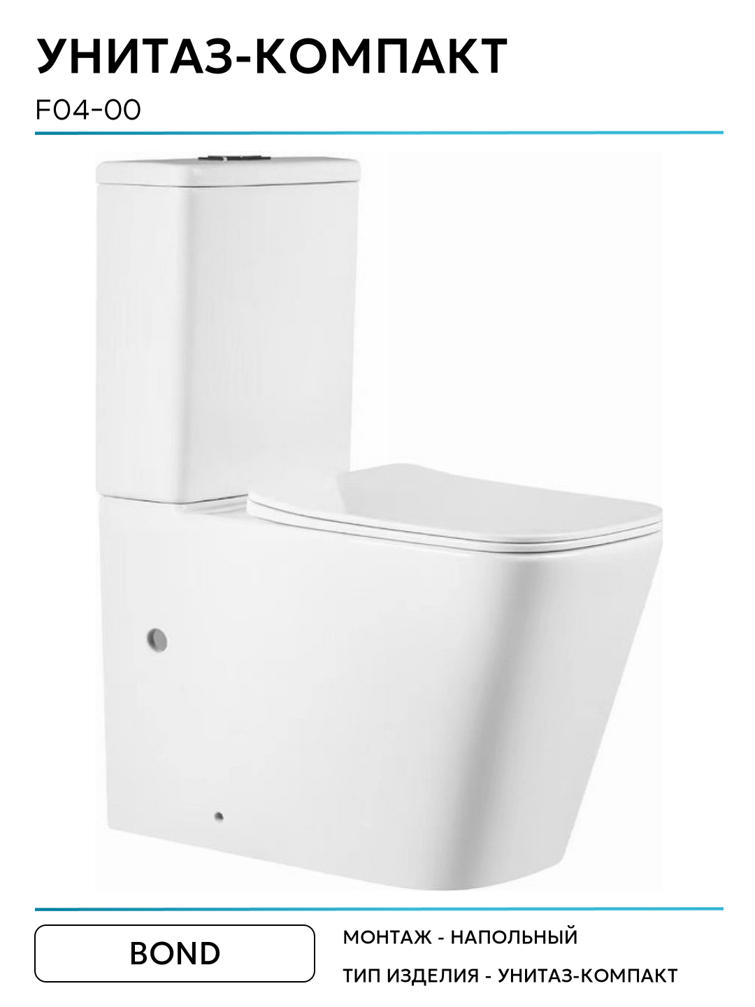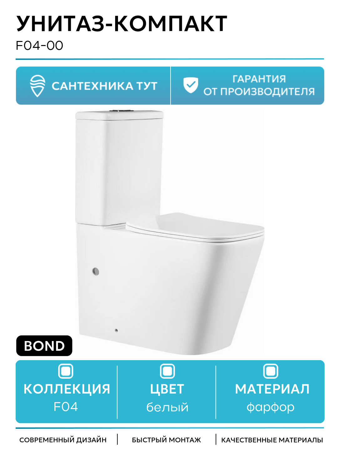 Купить Унитаз-компакт Bond F04-00 Белый с бачком и сиденьем Микролифт белый фарфор напольный с доставкой по всей России.