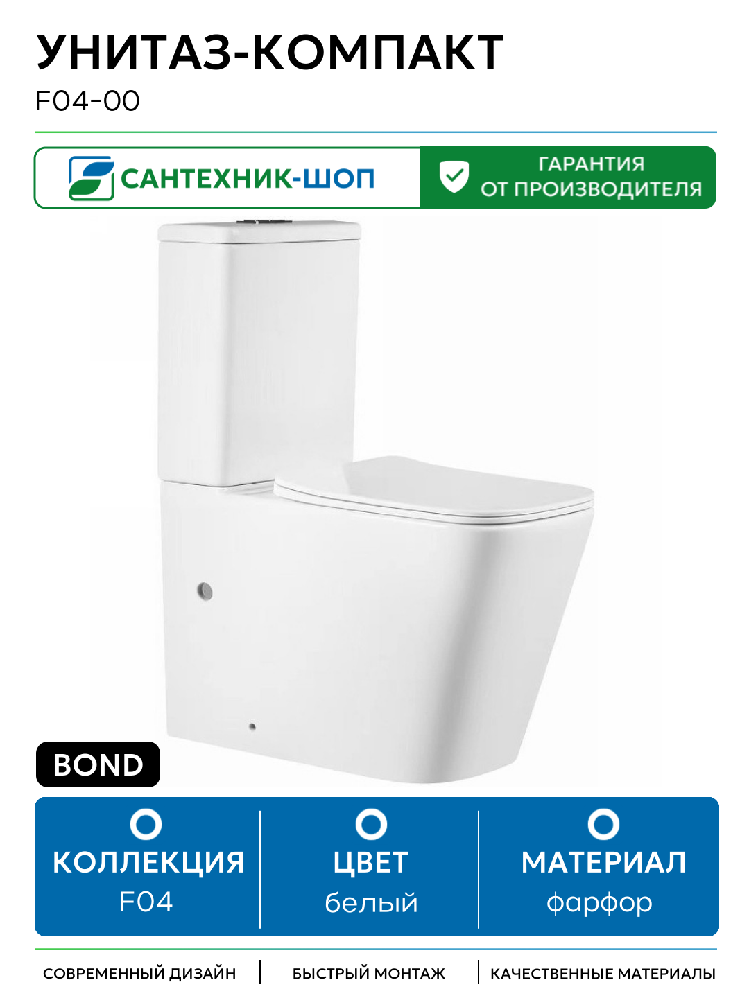 Купить Унитаз-компакт Bond F04-00 Белый с бачком и сиденьем Микролифт белый фарфор напольный с доставкой по всей России.