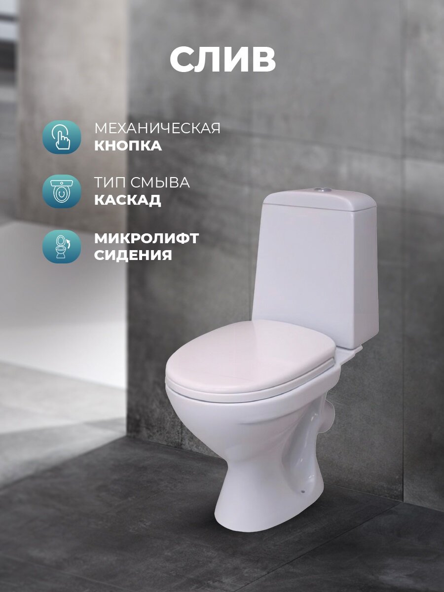 - Полипропиленовое сидение оснащено механизмом плавного опускания soft-close.