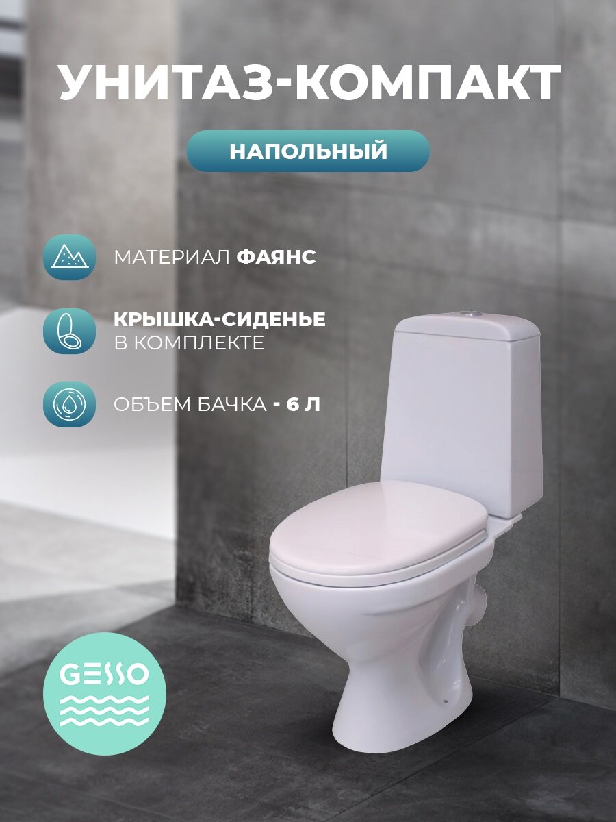 Напольный унитаз Gesso W 102 Премиум-2 имеет оптимальный компактный размер и надежный косой выпуск. Практичная и удобная в эксплуатации модель с классической овальной чашей и современным прямоугольным бачком создает в санузле неповторимый стиль, атмосферу комфорта и уюта.