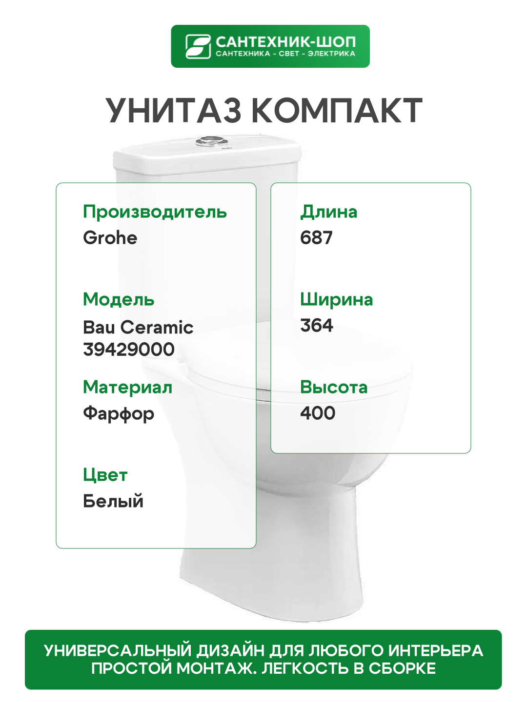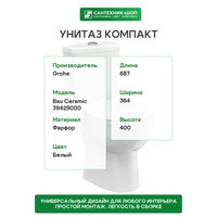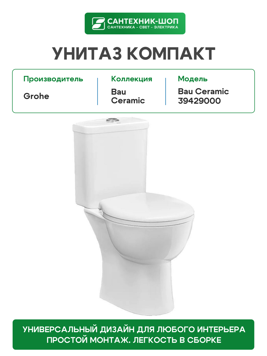 Унитаз компакт Grohe Bau Ceramic 39429000 без бачка и сиденья: сравнение цен, характеристики, фото, актуальное наличие и цены.