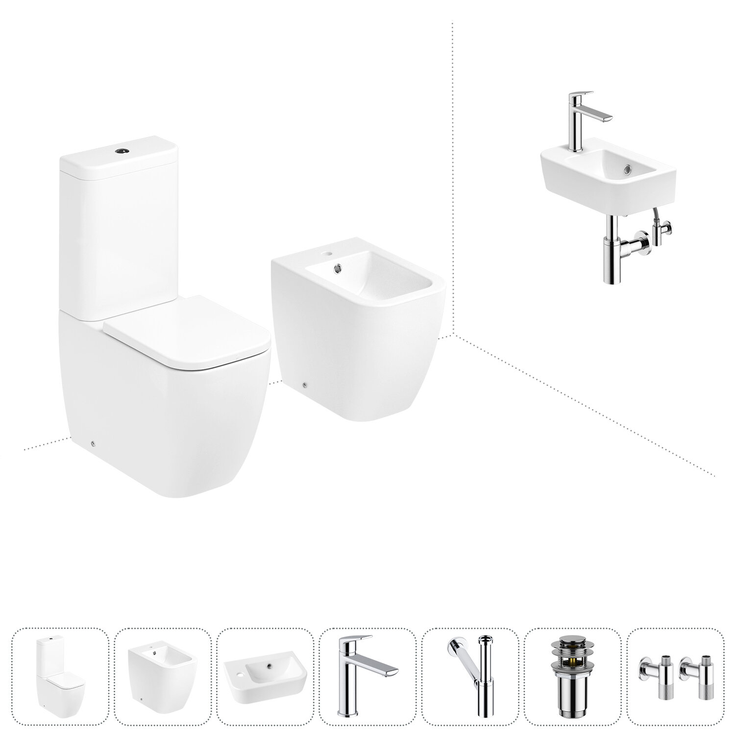 Унитаз-компакт Lavinia Boho One 202009016 в наборе 7 в 1: напольный унитаз с бачком и сиденьем микролифт, биде, раковина, донный клапан, сифон, смеситель, вентили 2 шт (цвет набора хром): сравнение цен, характеристики, фото, актуальное наличие и цены.