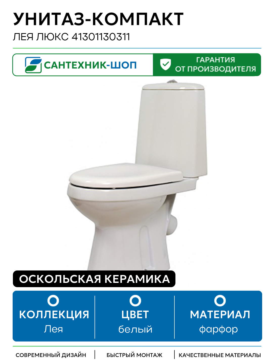 Унитаз-компакт Оскольская Керамика Лея Люкс 41301130311 с бачком и сиденьем белый фарфор напольный: сравнение цен, характеристики, фото, актуальное наличие и цены.