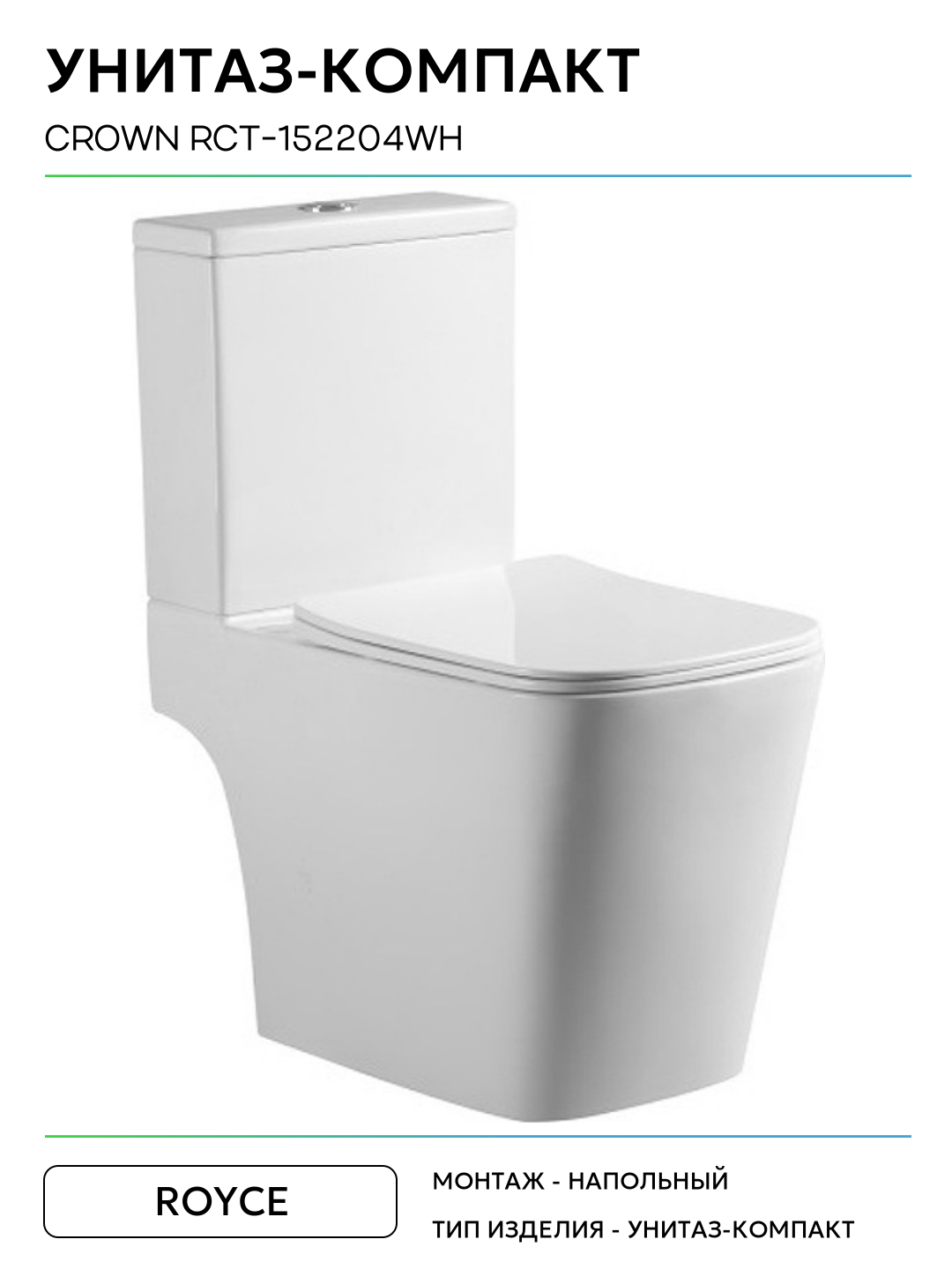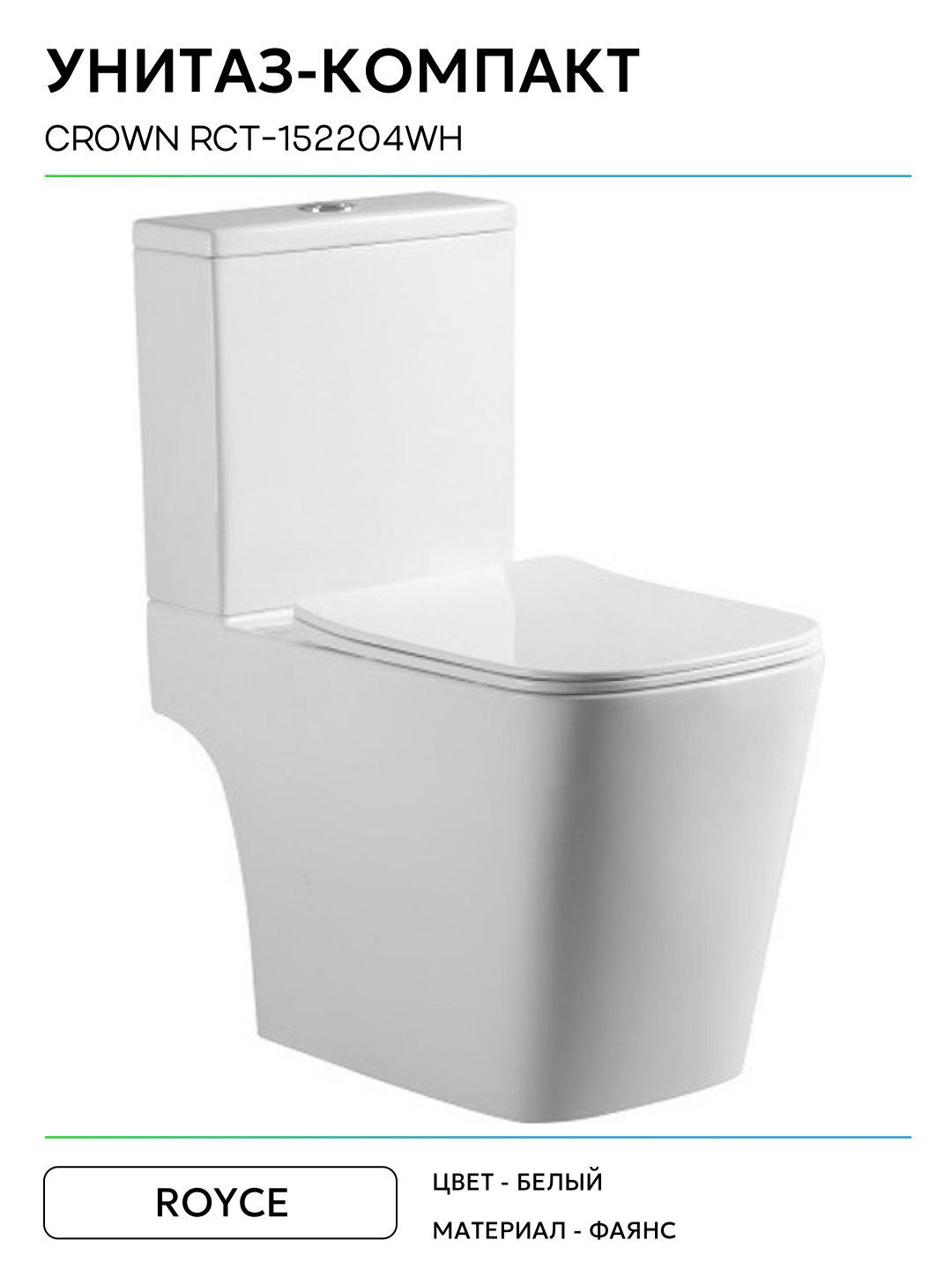 Унитаз-компакт Royce Crown RCT-152204WH с бачком и сиденьем Микролифт белый фаянс напольный: сравнение цен, характеристики, фото, актуальное наличие и цены.