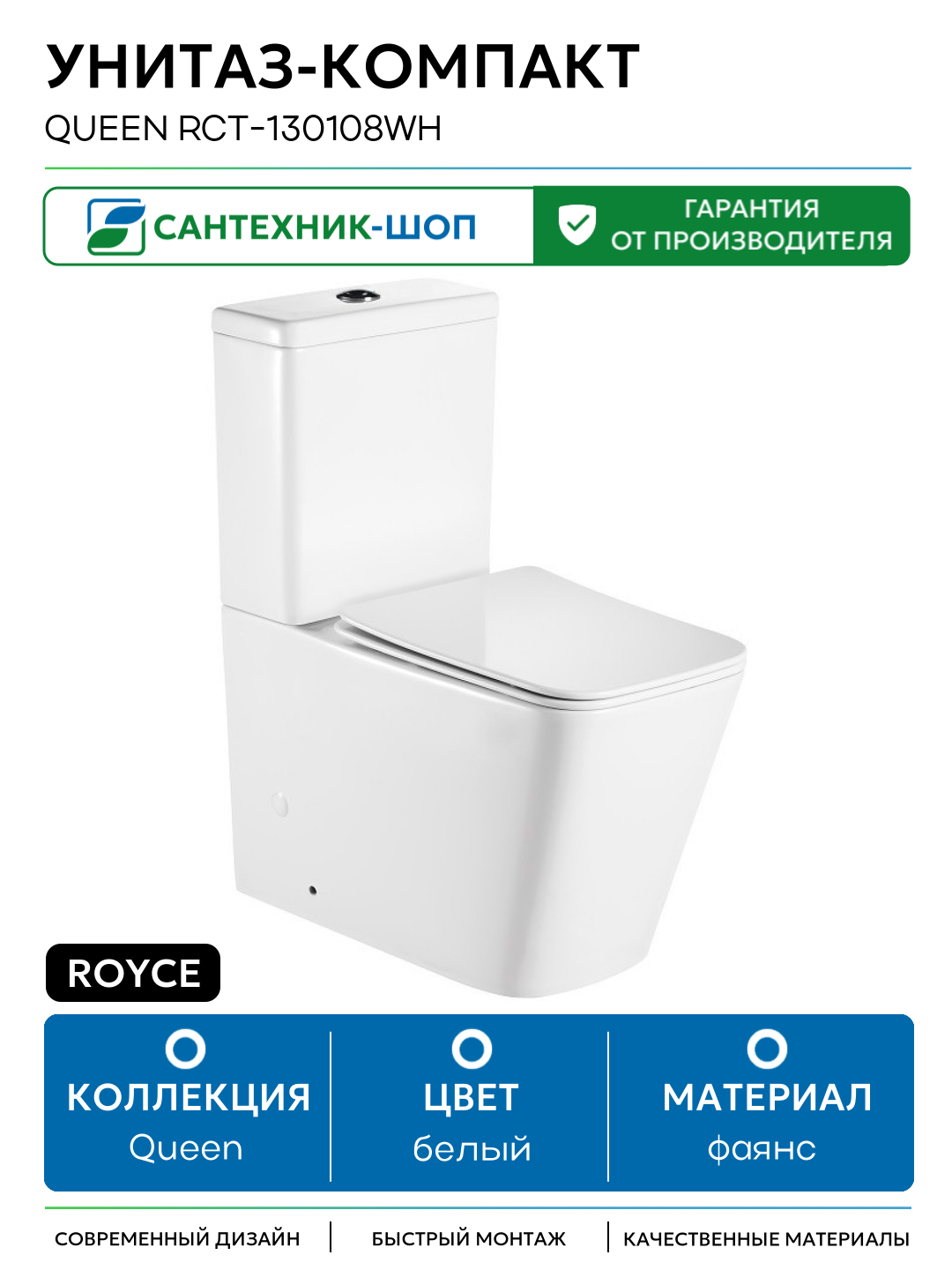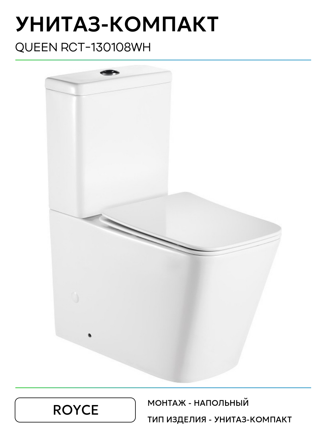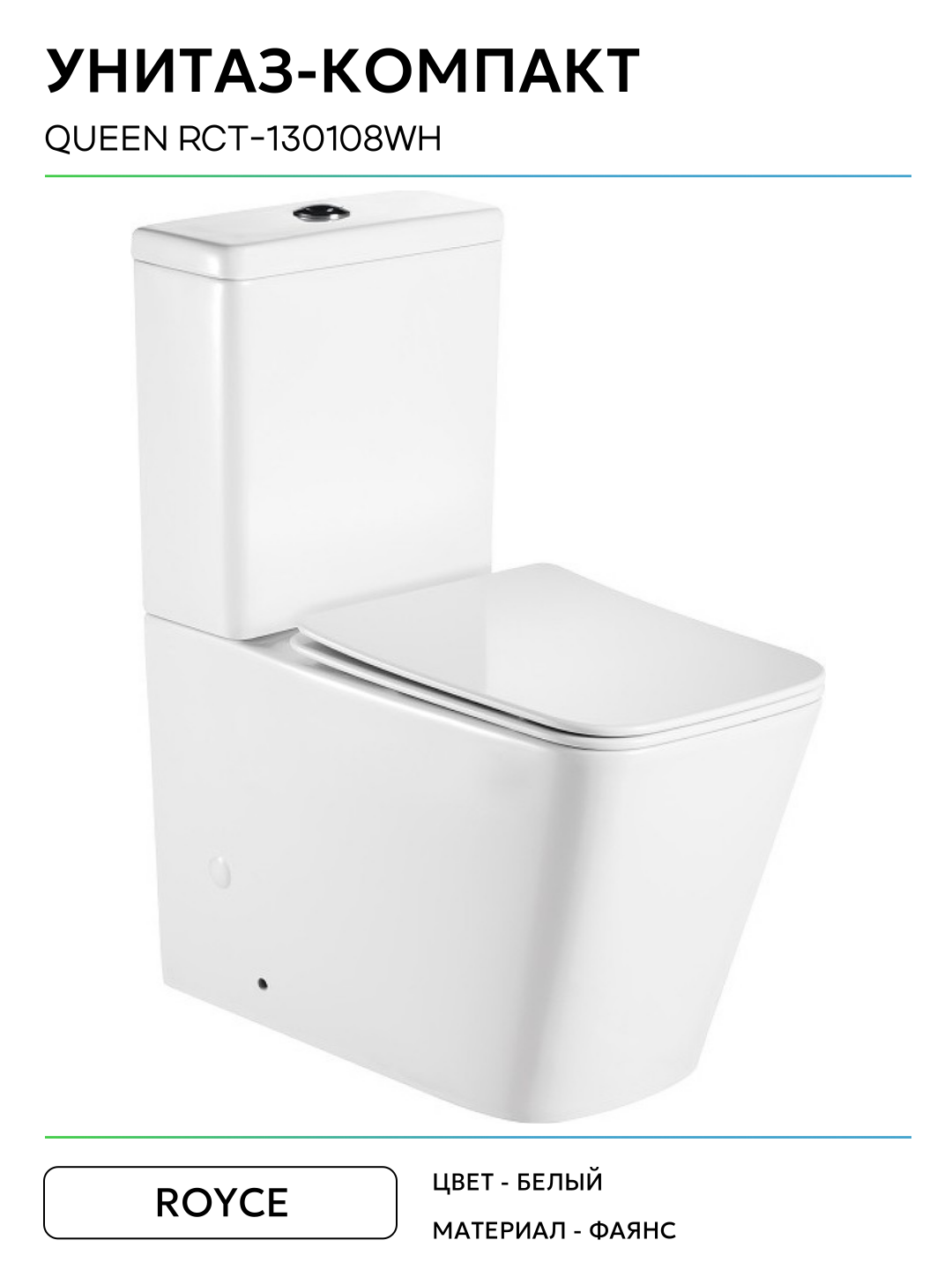 Унитаз-компакт Royce Queen RCT-130108WH с бачком и сиденьем Микролифт белый фаянс напольный: сравнение цен, характеристики, фото, актуальное наличие и цены.