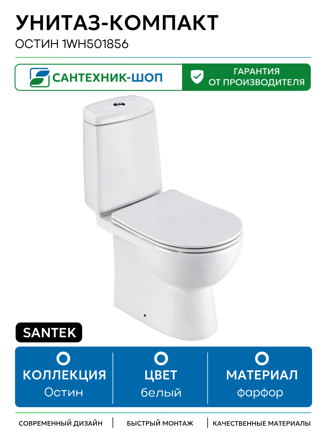 Унитаз-компакт Santek Остин 1WH501856 с бачком и сиденьем Микролифт белый фарфор напольный: сравнение цен, характеристики, фото, актуальное наличие и цены.
