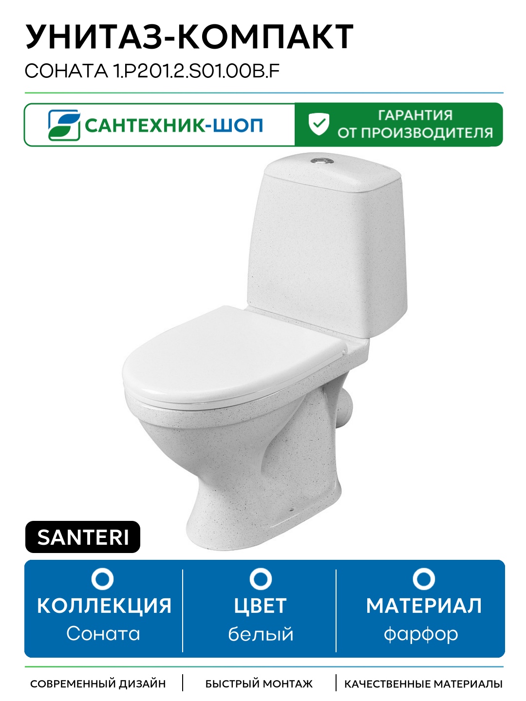 Унитаз-компакт Santeri Соната 1. P201.2. S01.00B. F с бачком и сиденьем белый фарфор напольный: сравнение цен, характеристики, фото, актуальное наличие и цены.