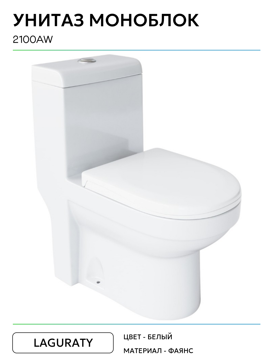 Купить Унитаз моноблок Laguraty 2100AW с бачком и сиденьем Микролифт белый фаянс напольный с доставкой по всей России. Унитаз моноблок Laguraty 2100AW с бачком и сиденьем Микролифт белый фаянс напольный: сравнение цен, характеристики, фото, актуальное наличие и цены.
