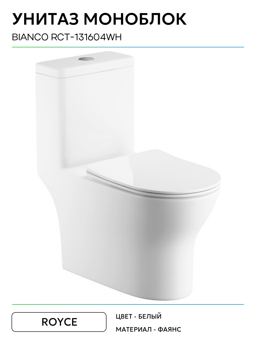 Купить Унитаз моноблок Royce Bianco RCT-131604WH с сиденьем Микролифт белый фаянс напольный с доставкой по всей России.