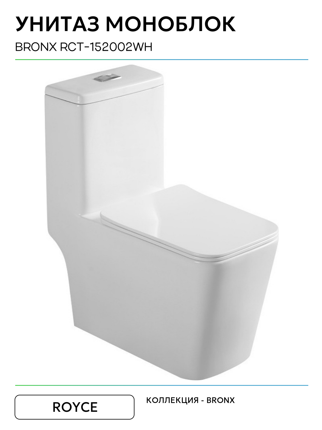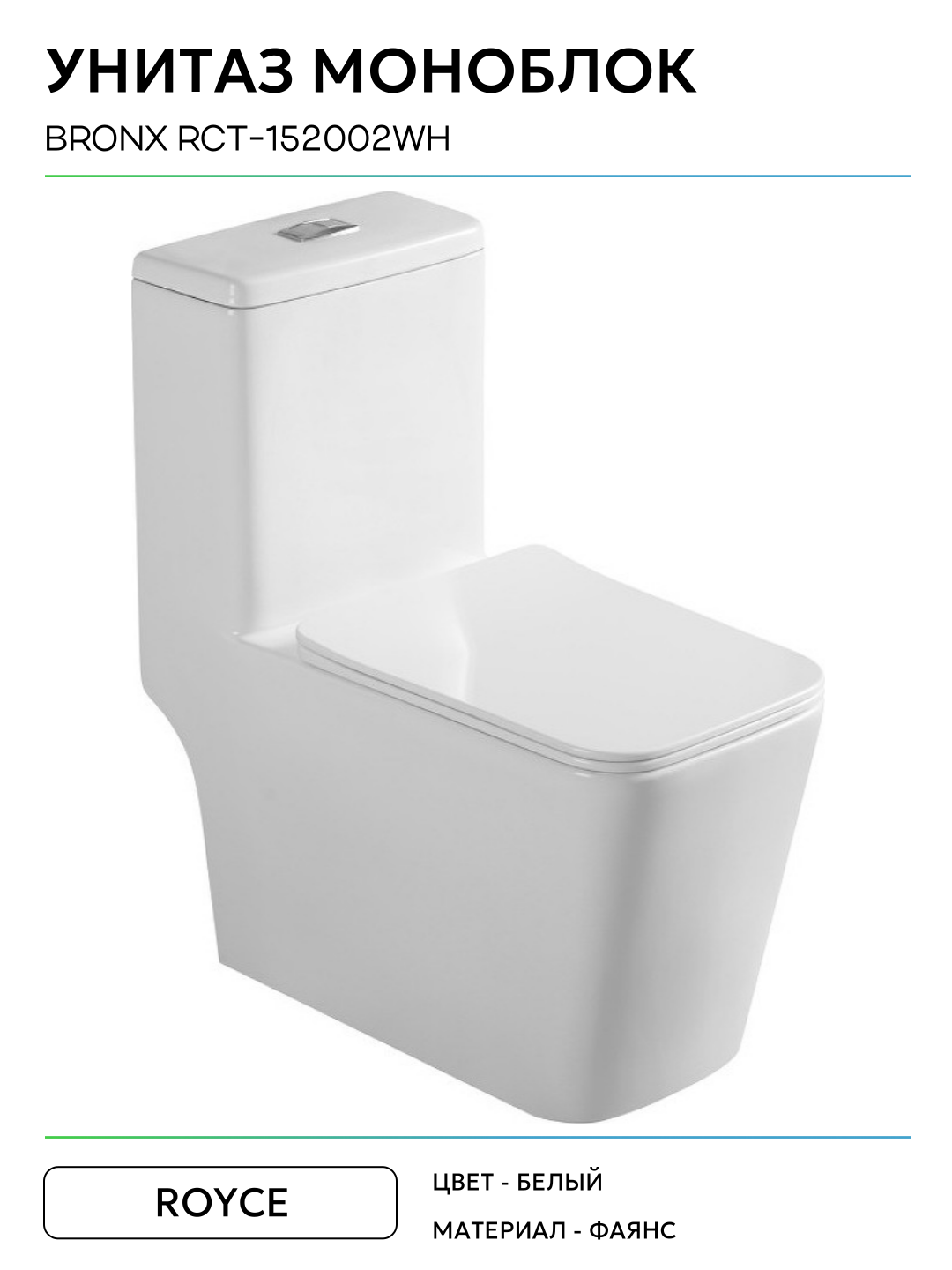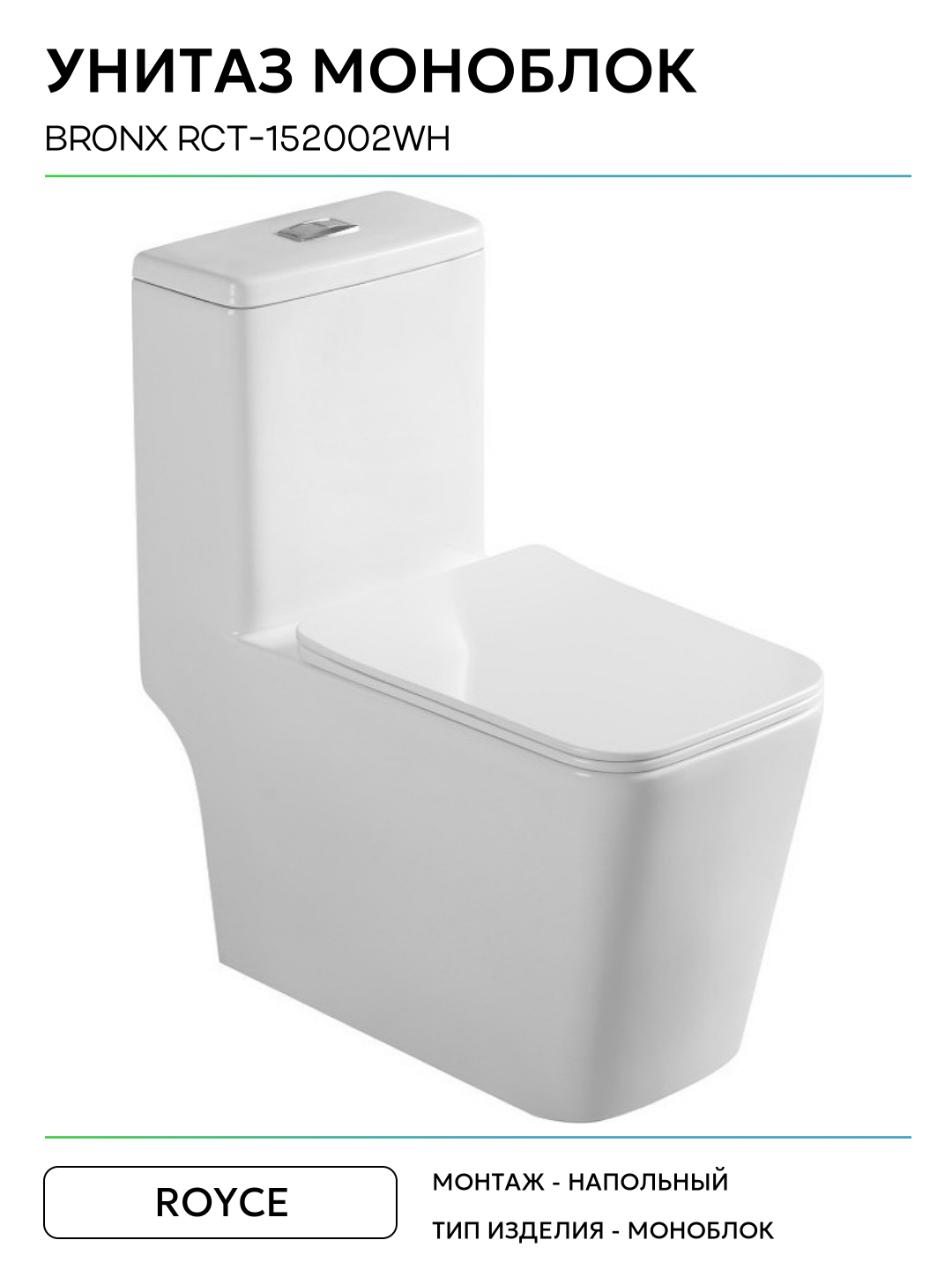 Унитаз напольный моноблок ROYCE Bronx RCT-152002WH, безободковый, сиденье дюропласт, микролифт: сравнение цен, характеристики, фото, актуальное наличие и цены.