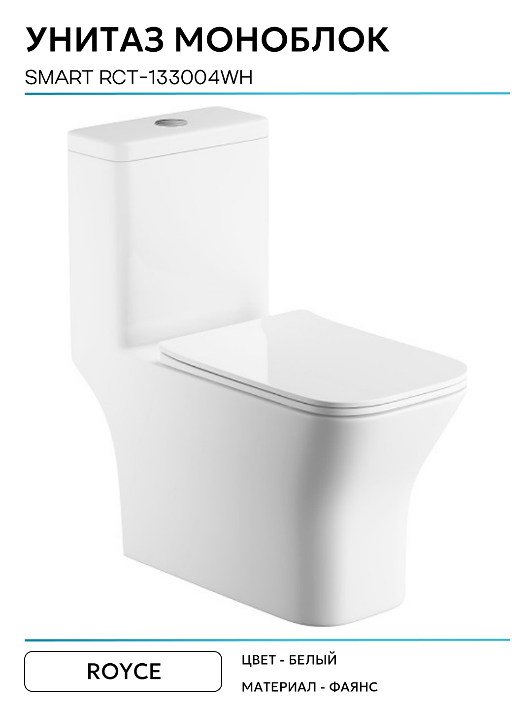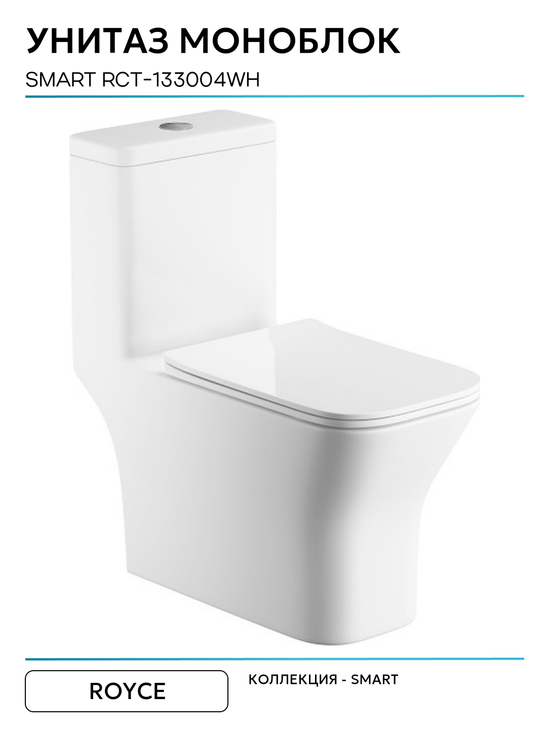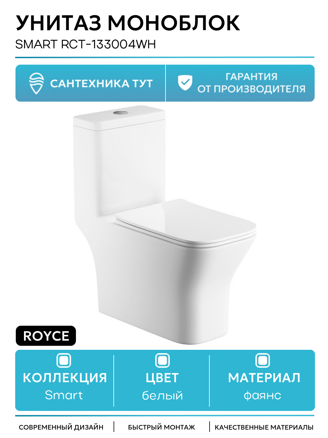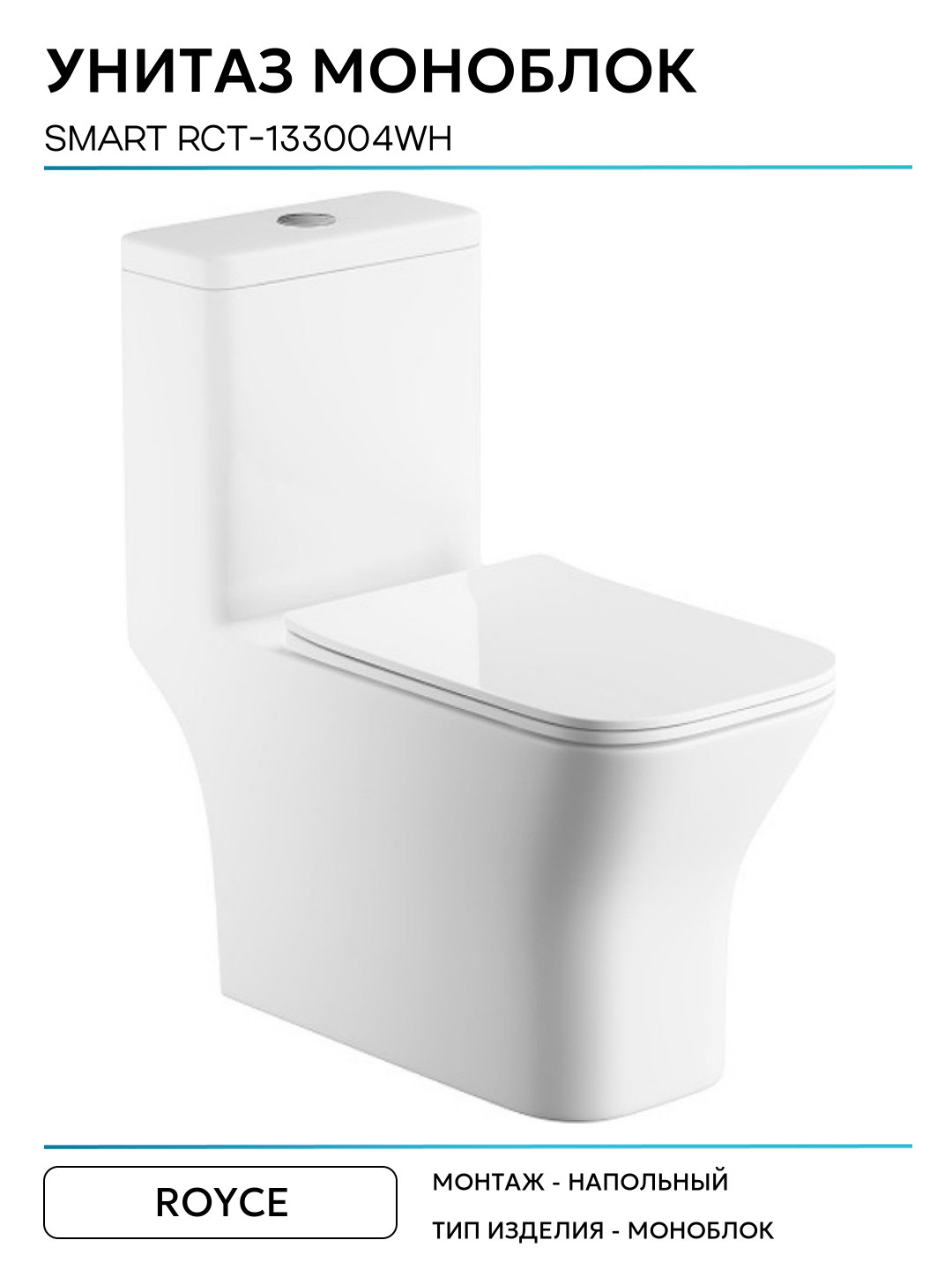 Унитаз моноблок Royce Smart RCT-133004WH с сиденьем Микролифт белый фаянс напольный: сравнение цен, характеристики, фото, актуальное наличие и цены.