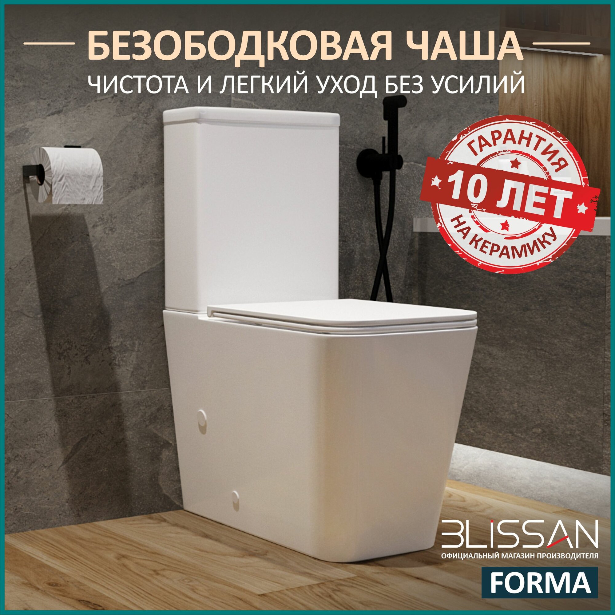 - Современный дизайн: унитаз напольный компакт BLISSAN Forma Rimless станет стильным акцентом в интерьере вашей ванной комнаты.