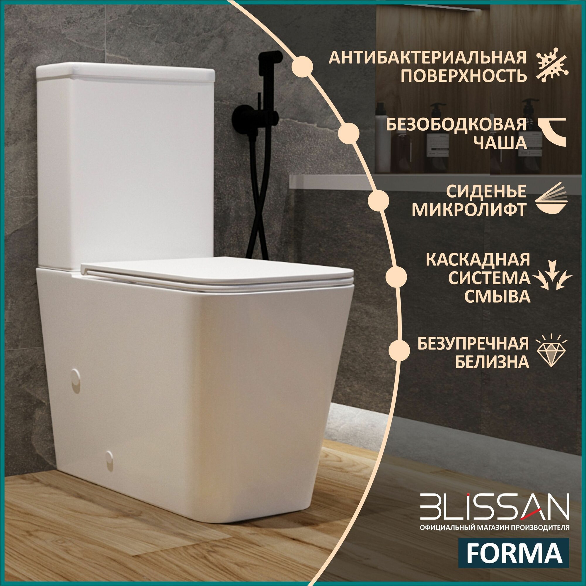Унитаз напольный с бачком и сиденьем микролифт BLISSAN Forma Rimless – это идеальное решение для тех, кто ценит качество и комфорт. Закажите унитаз напольный безободковый прямо сейчас и оцените преимущества модели с сиденьем микролифт.