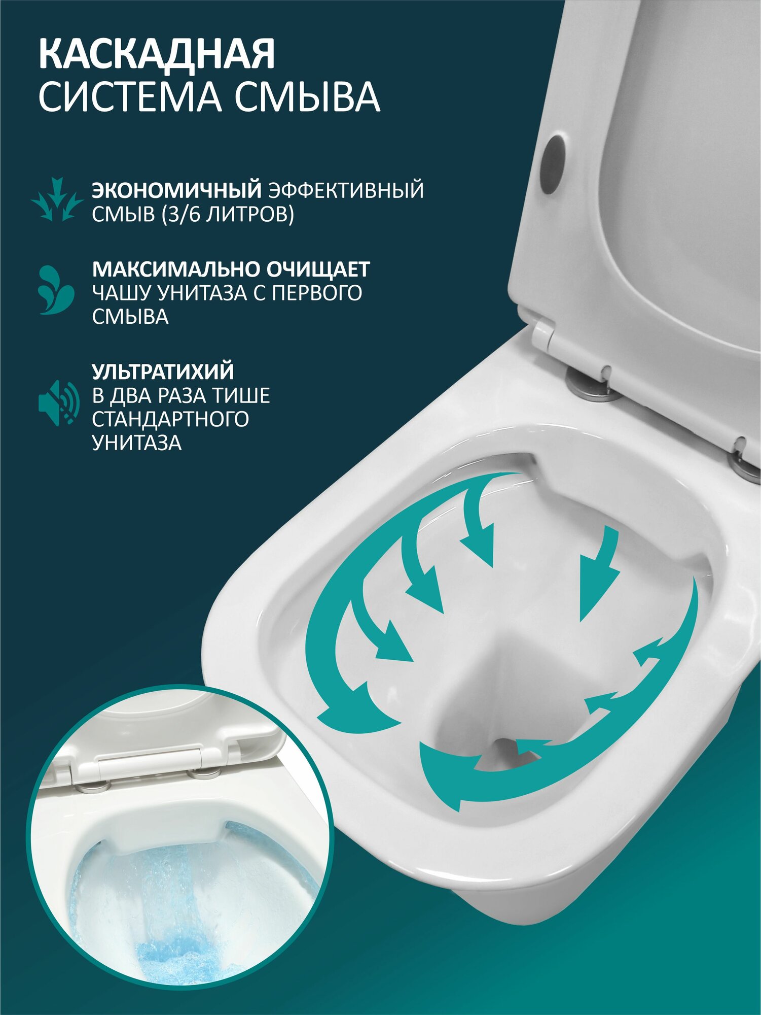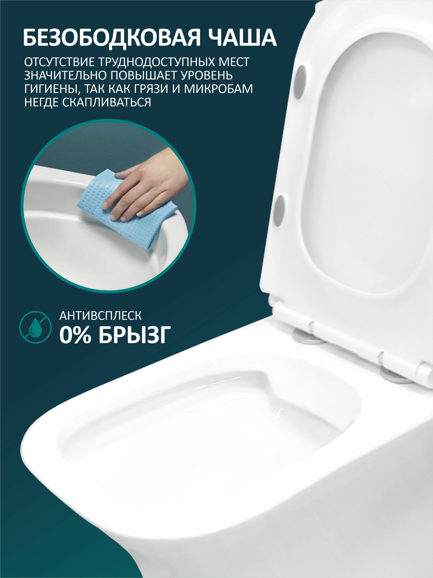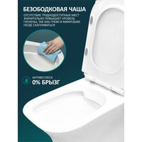 - Сиденье с микролифтом: плавное и бесшумное закрывание, исключающее удары и повреждения.